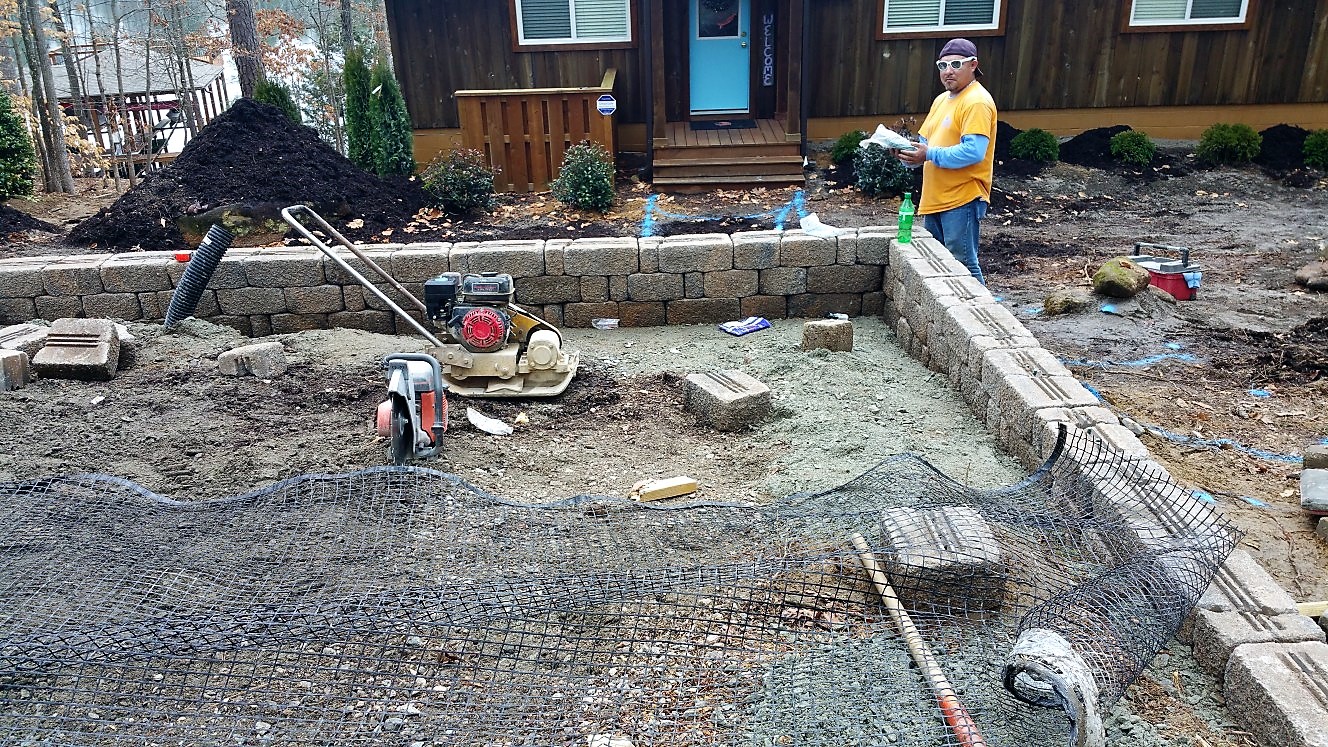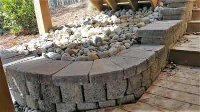 And finally, before we left, we cleaned up a little niche space under some steps, with a stone retaining wall matching the driveway.