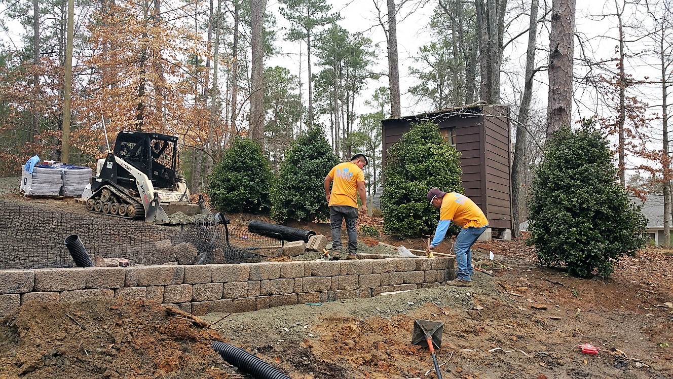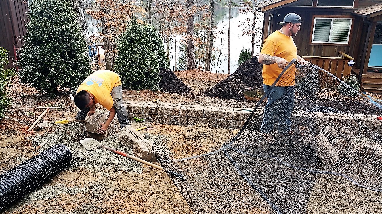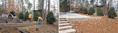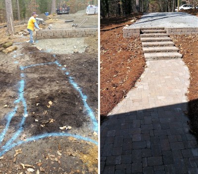 Tying the retaining wall into the stone steps and a walkway to the house was next on our crews’ agenda.