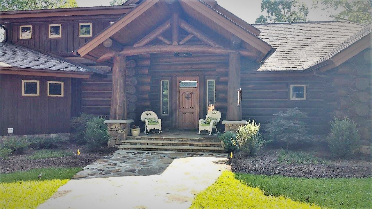 Upgrading this customer with night lighting allowed us to check in the other day on the status of some major landscaping work we did last Spring. If you recall, we installed new seed, sod, and foundation plantings, corrected some drainage issues, laid down lots of mulch, and topped it all off with a comprehensive irrigation system. The verdict: everything is thriving, and a nice complement to this striking log home on the Lake.
