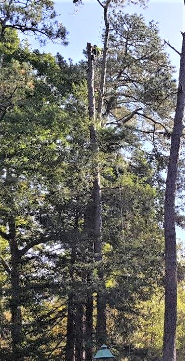 That’s it for now. We will conclude this post with a nod to our friend, Melvin Bradley, who specializes in tree removal, trimming, and stump grinding. Here are shots of his crew working on some of the large trees dotting this property.