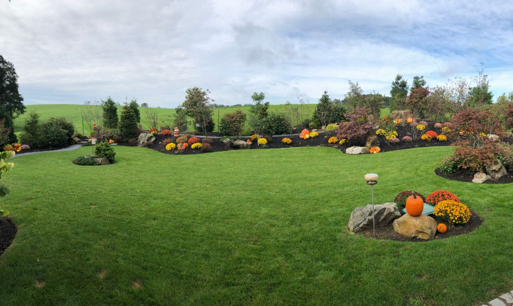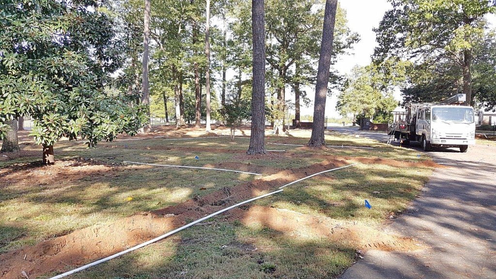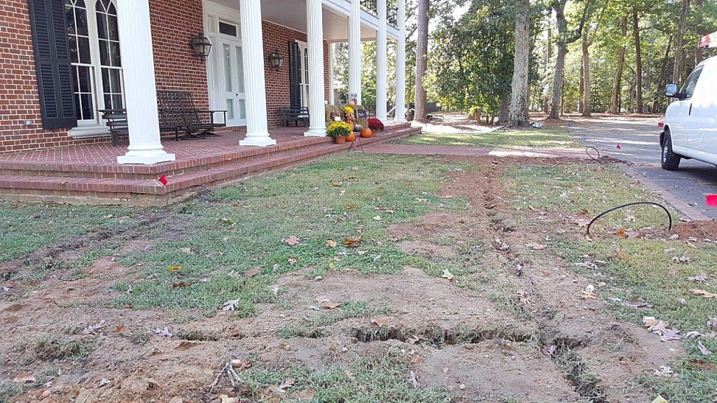 This customer is restoring and enhancing this stately old house, built circa 1940, and we are doing the same with the landscape. It is more than 7 acres of land in which we are installing among other things a complete irrigation system, planting areas, new seed and sod, mulch, night lighting, and also a special berm that will do double duty as screenage for the new pool and garden space for a colorful variety of plants.