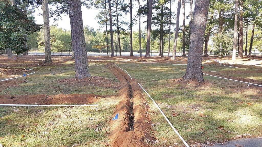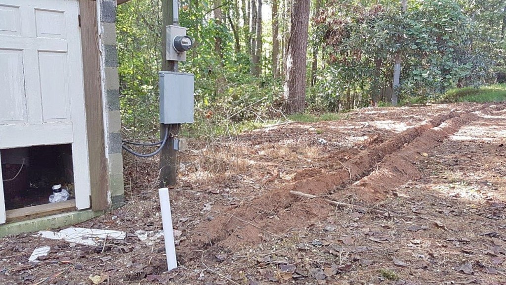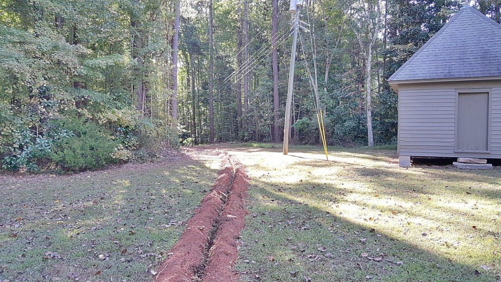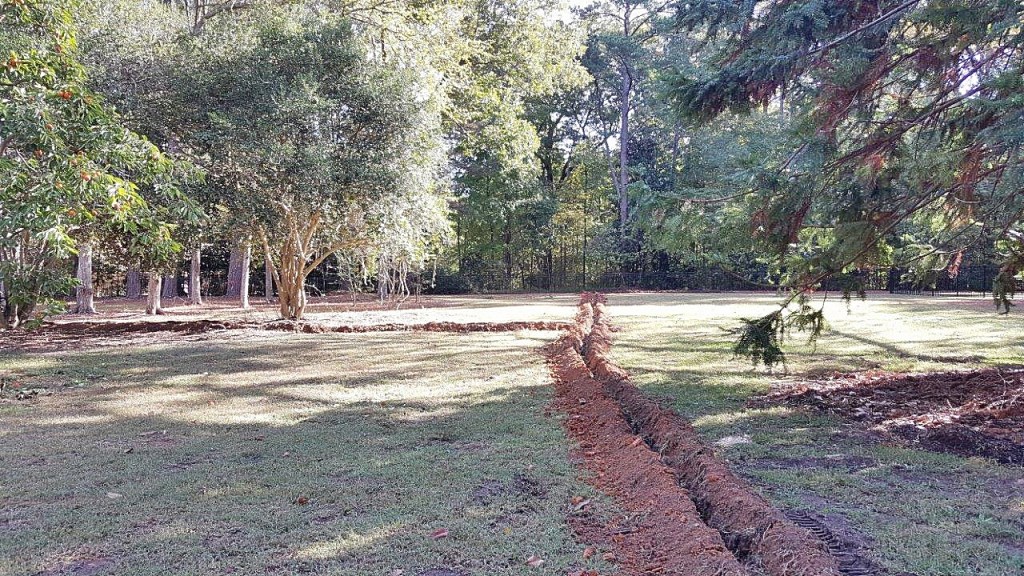 The headwaters, so to speak, for the irrigation is a pump house more than 700 feet distant – and we have had to trench all the way to it.