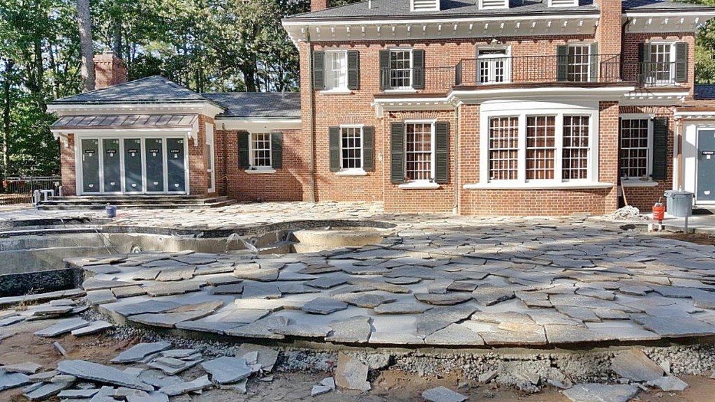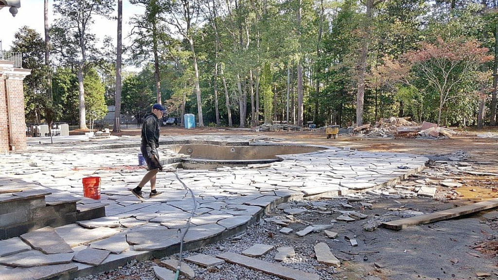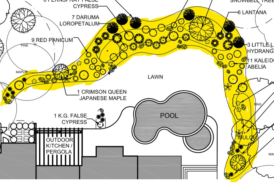 The gentlemen in the picture above is Josh of Classic Stoneworks, LLC out of Pensylvania. He is supplying and laying the quartzite pool decking. When he is done, we are going to build a berm, which is essentially a mound of earth, to provide screenage for the pool area. But it will also double as a garden. If you’re having trouble visualizing this, here are a couple of concept pictures.