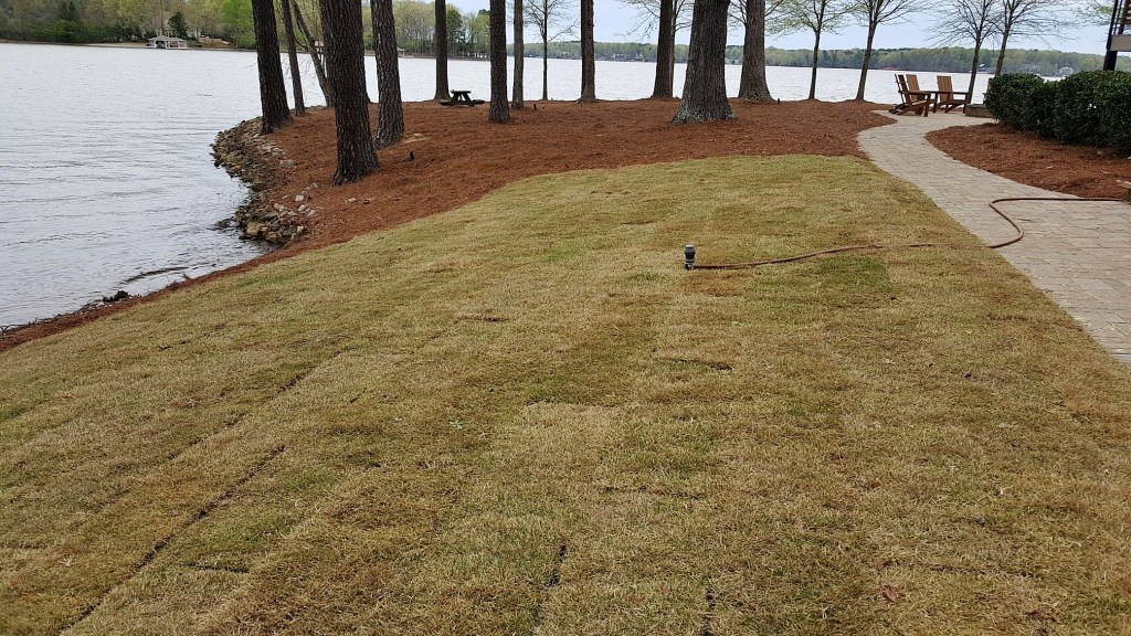 … trimmed the bushes and installed 800 sf of Compadre Zoysia sod.
