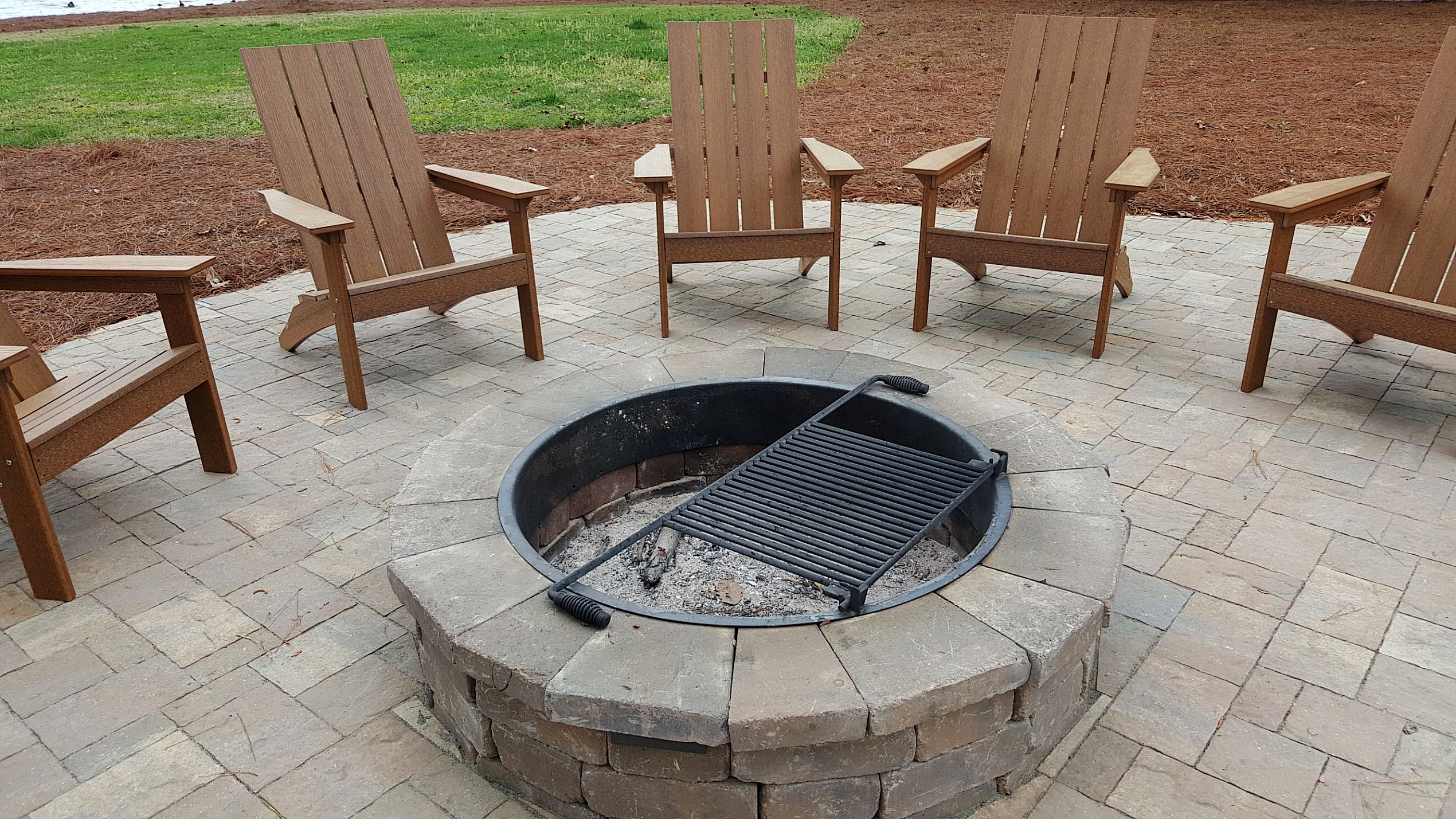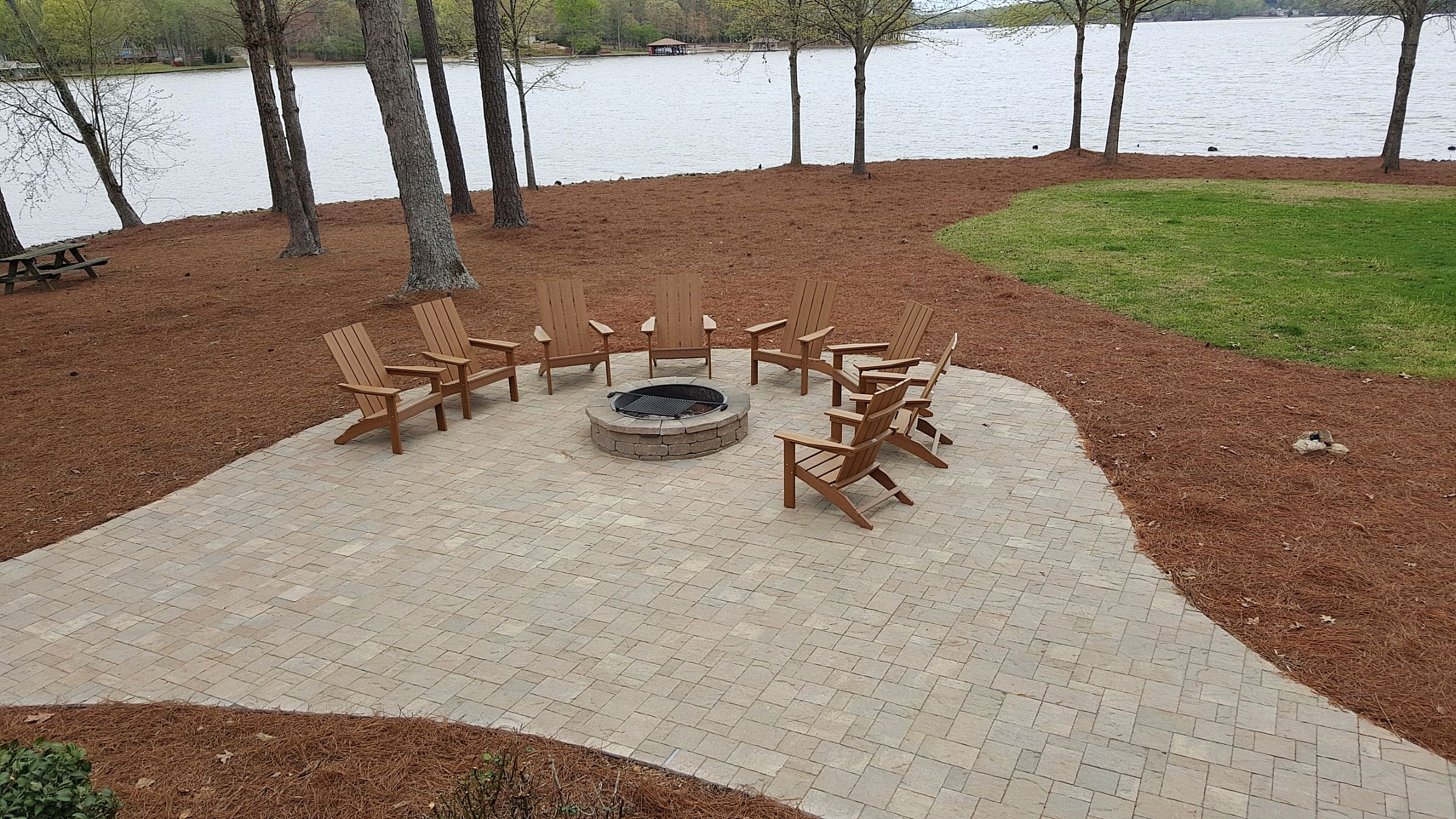 What fire pit? We’re glad you asked. That would be the fire pit in the middle of the 24′ Savannah Laffit paver patio.