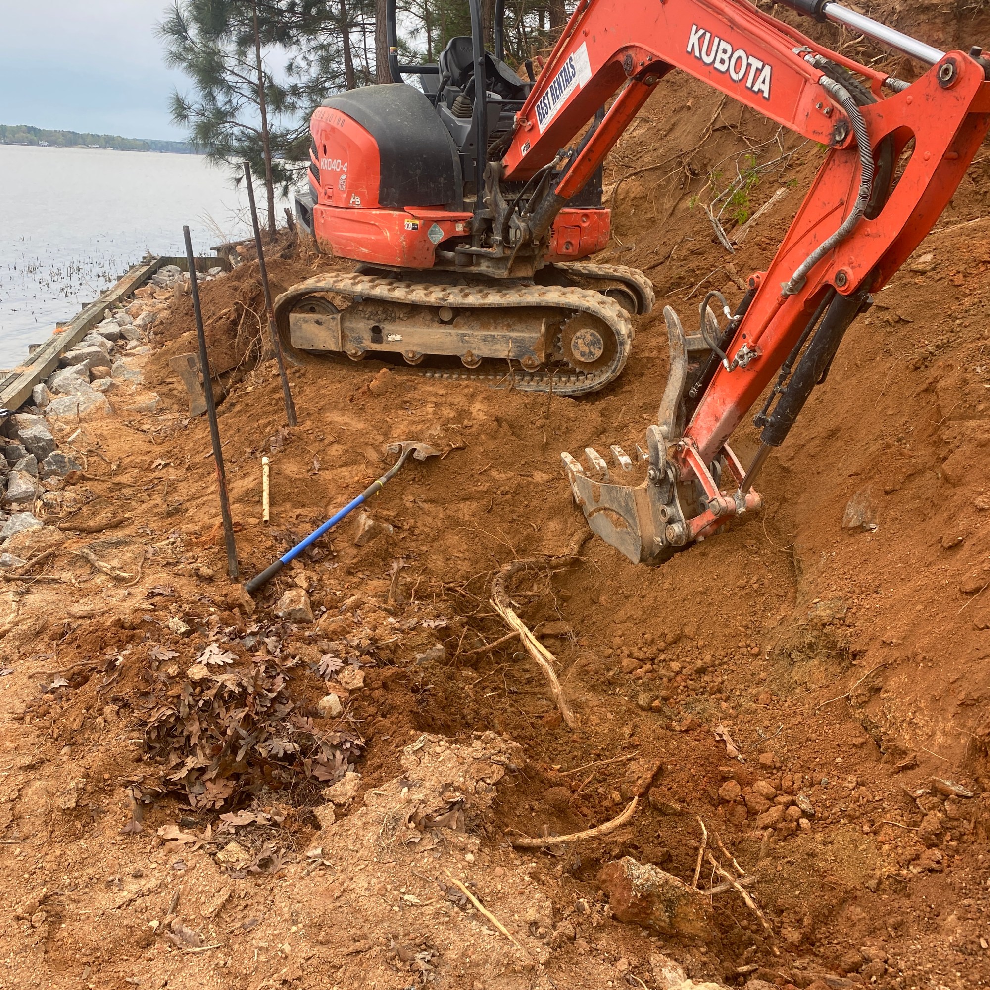 As a refresher, here are our guys from a few days ago preparing to install the retaining wall.