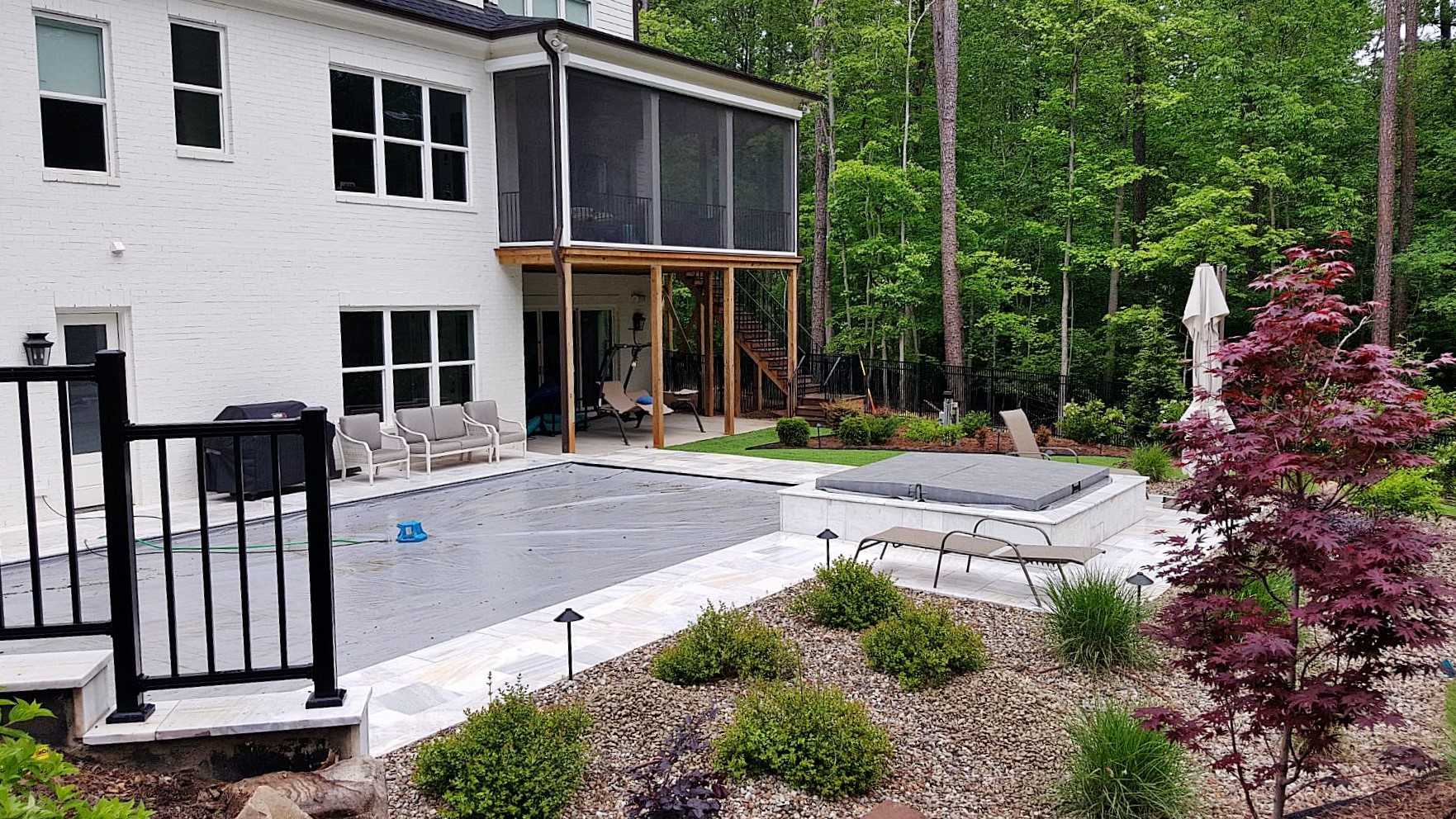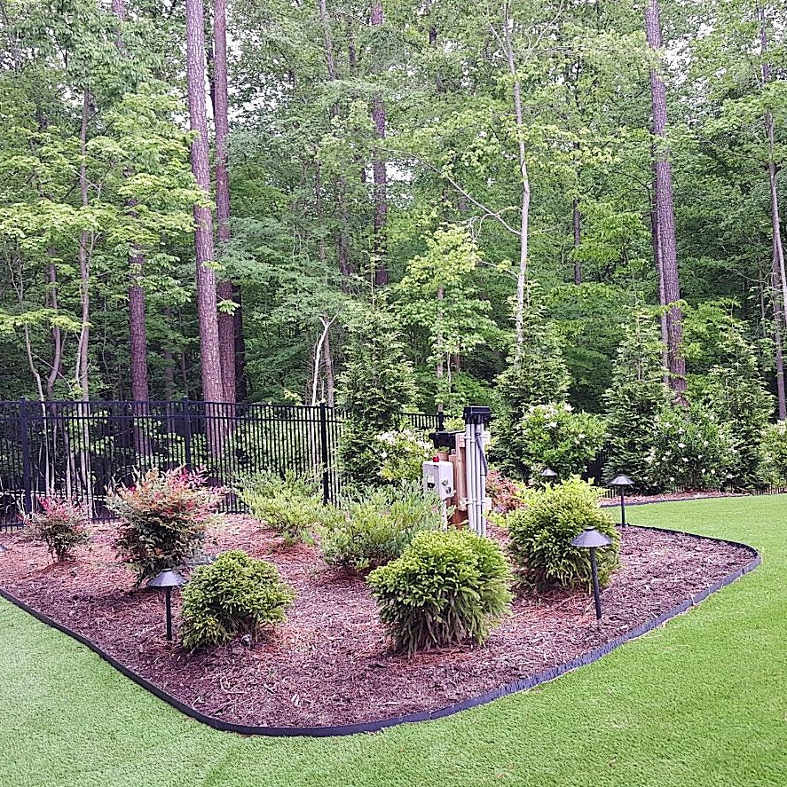 Needlepoint Hollies and Fragrant Osmanthus are always a favorite in these types of yardscape designs.
