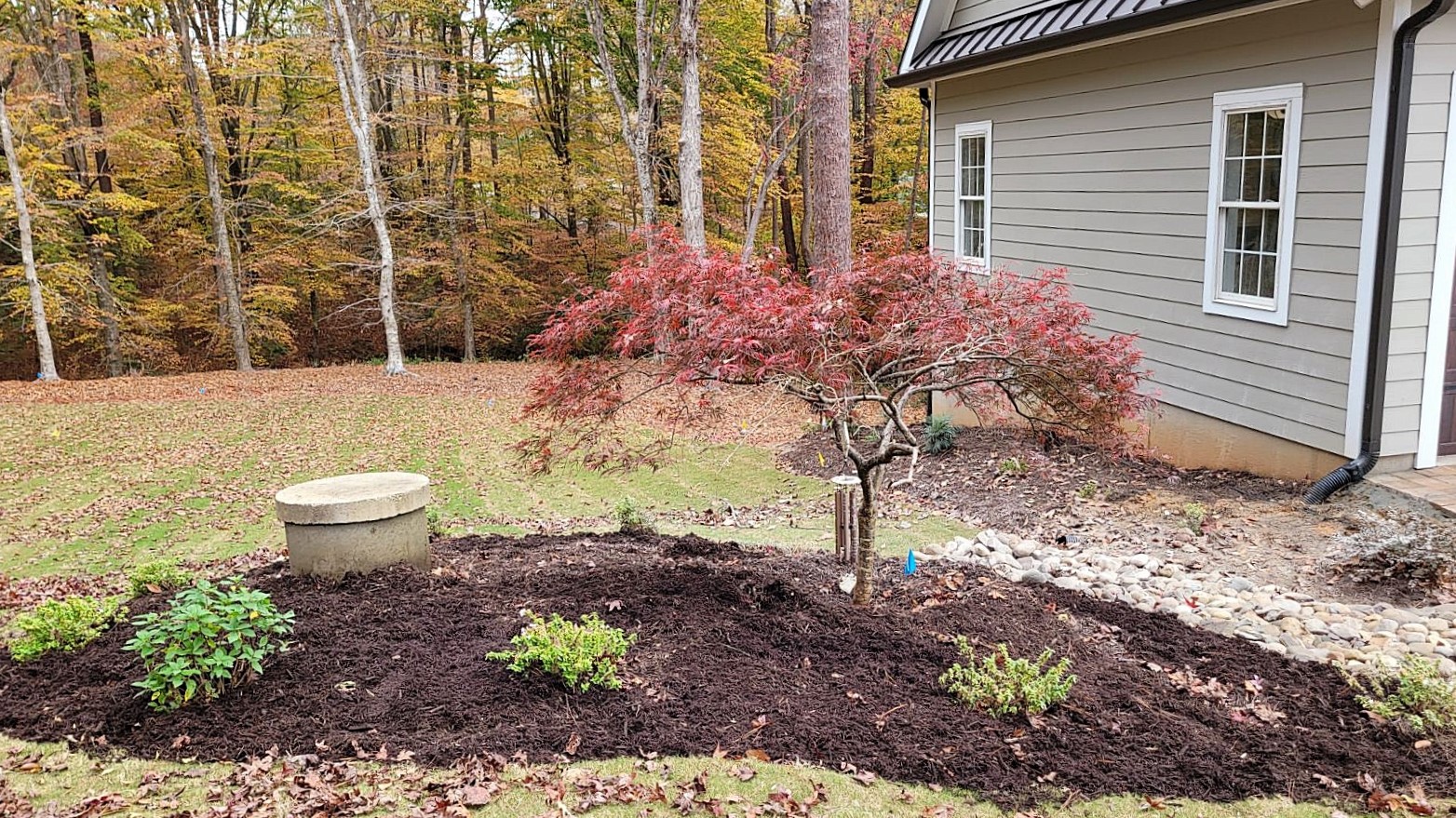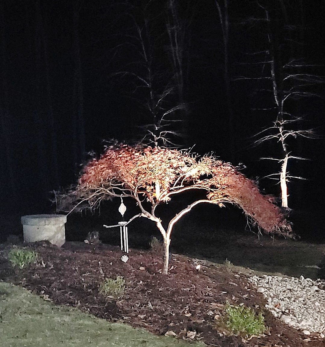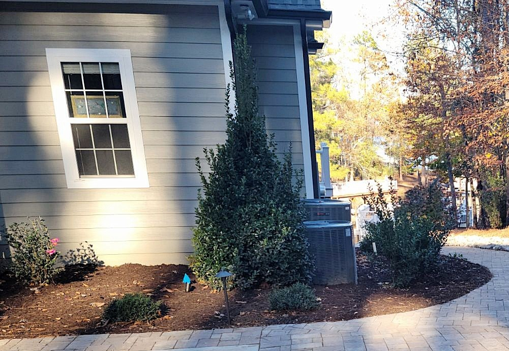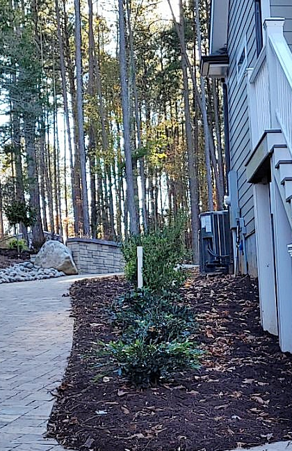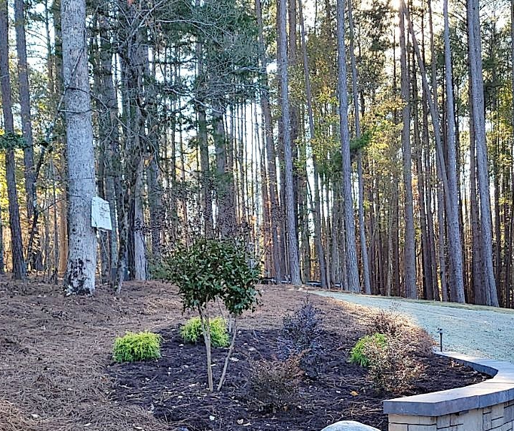 To top it off, we installed various plant material, Dark Walnut Designer Mulch, Pine Needle buffers, Bermuda Sod, Irrigation, and night lighting.