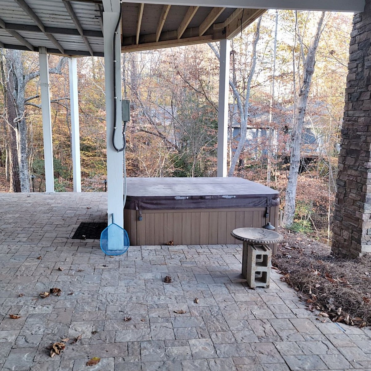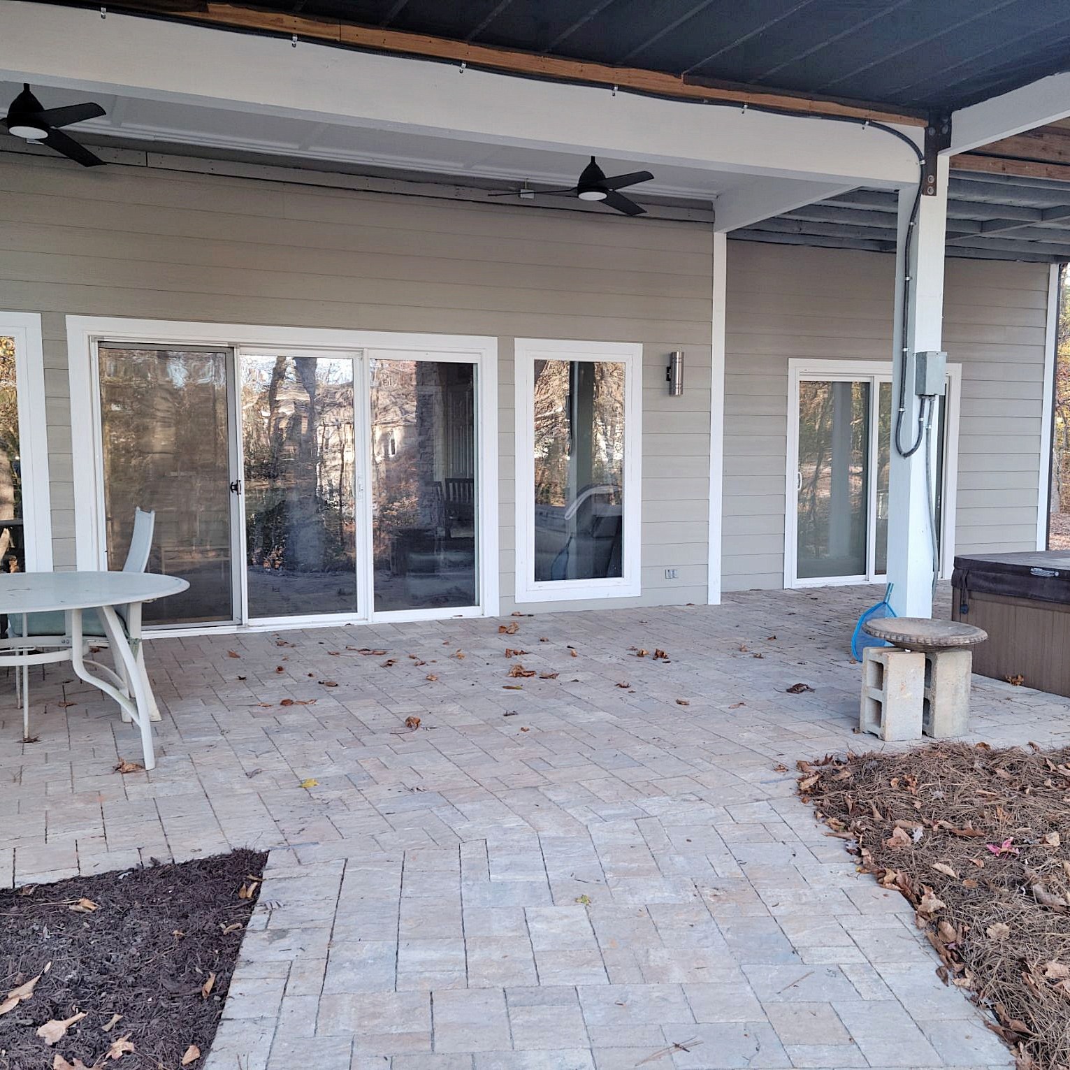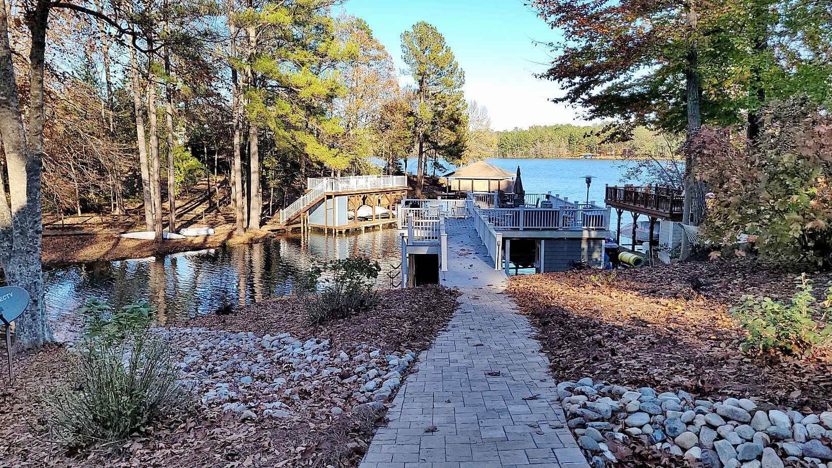 On the lakeside, we extended the walkway to connect with the steps, and to a Savannah Lafitt patio we installed under the upper deck.