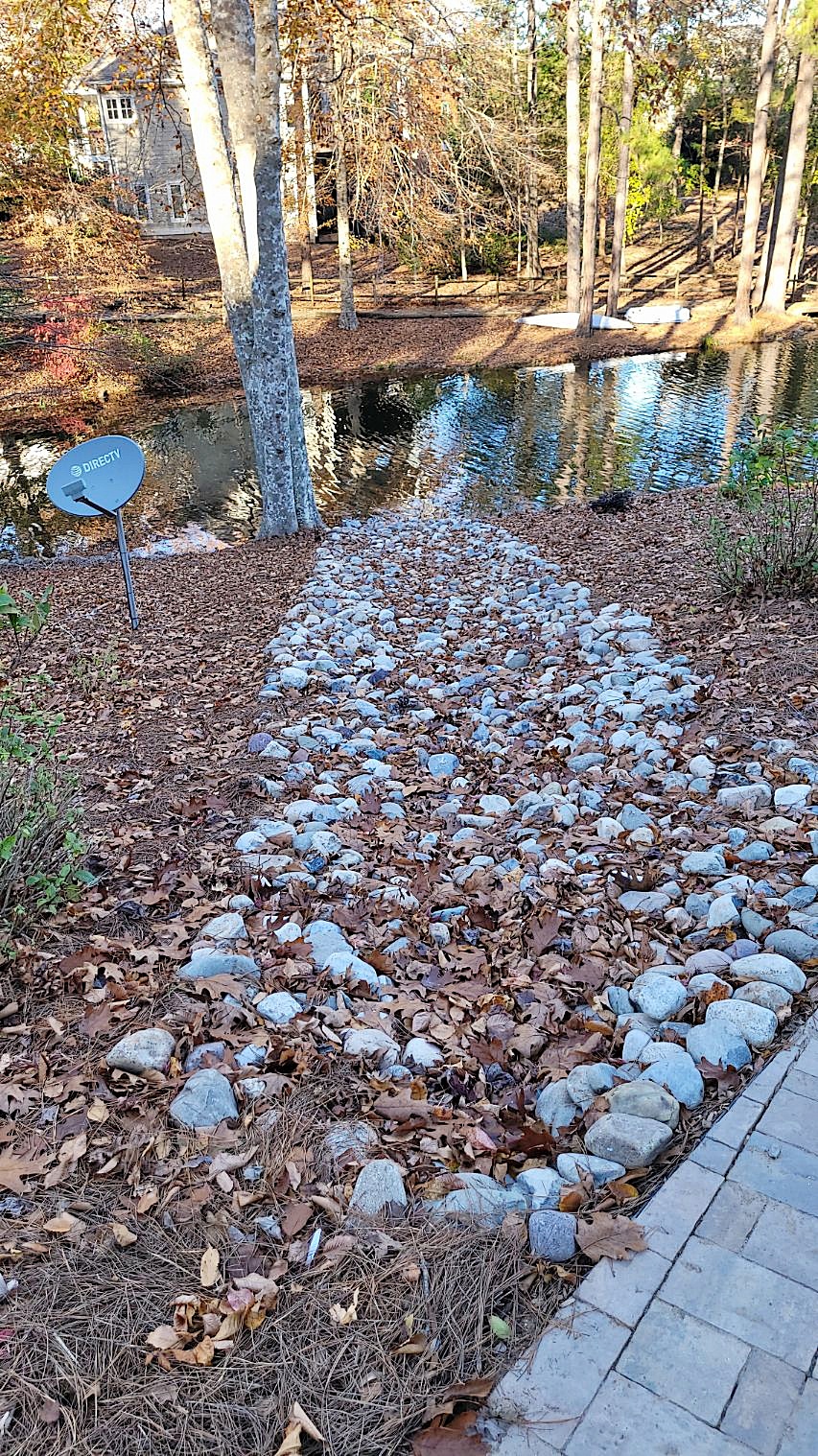 To protect this beautiful addition, our crews trucked in loads of Glacier River Jack washed river stone (I love that name) to capture and guide water coming down the slope.