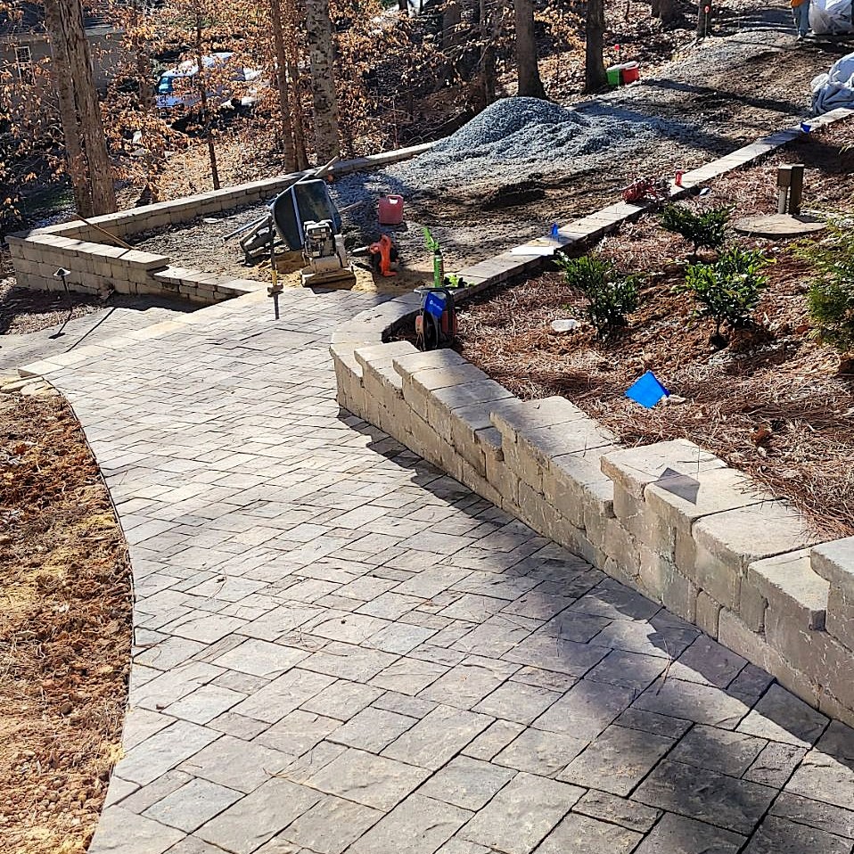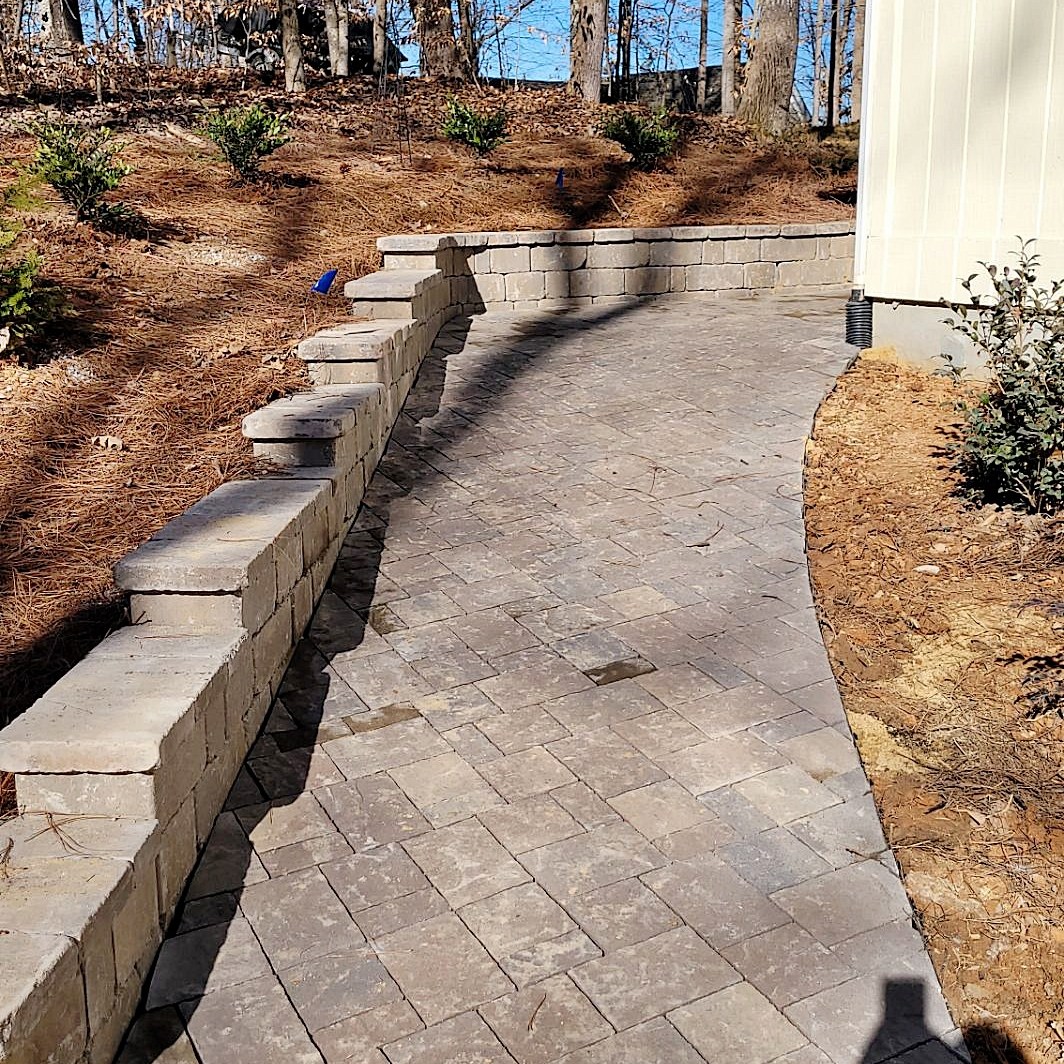 The walkway is River Street Lafitt paver stones, matching the original installation around the other side of the house.