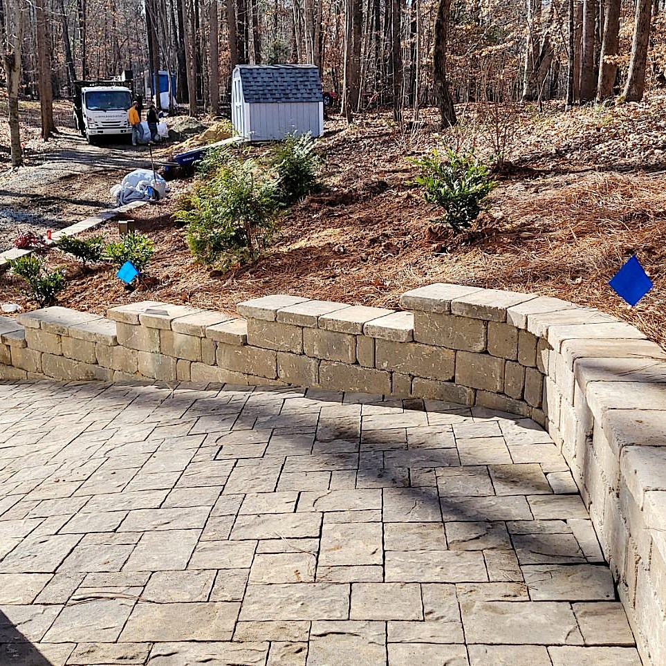 This is a 68′ long Colonial Castle Manor Grana paving wall, which is as elegant as it is durable.
