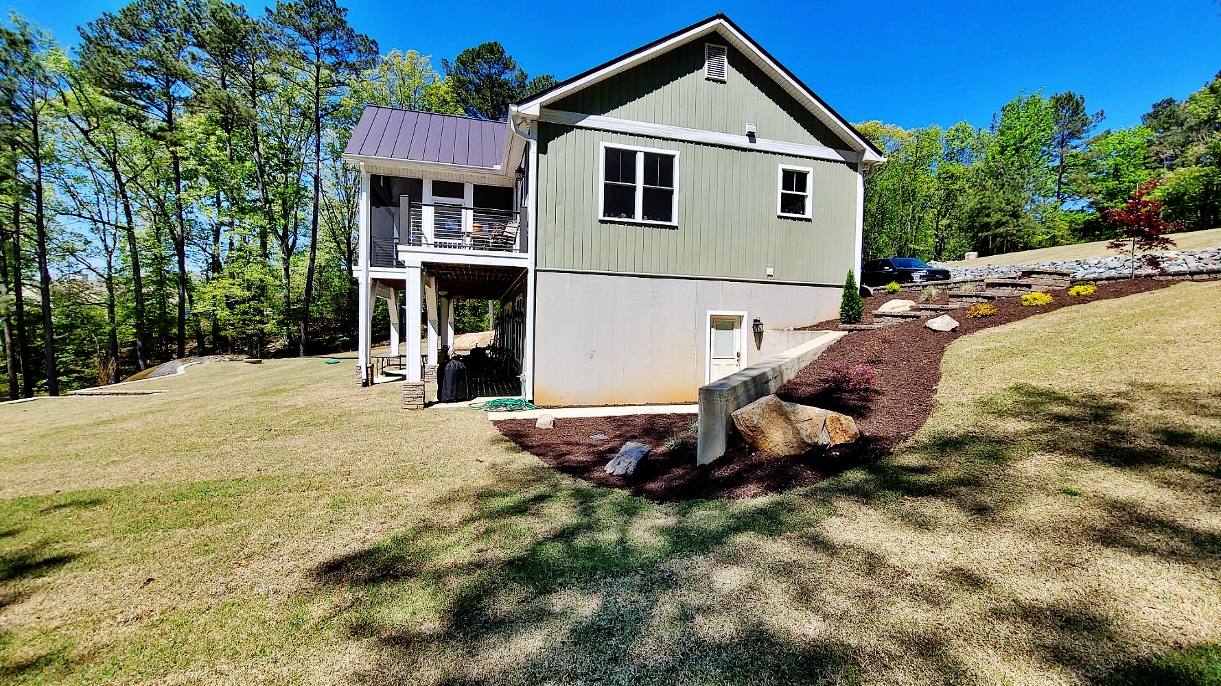 “Upgrades” does not begin to capture the makeover our crews did for this customer, from grading to sod to new planting beds to drainage control to … well, let’s go through it all.