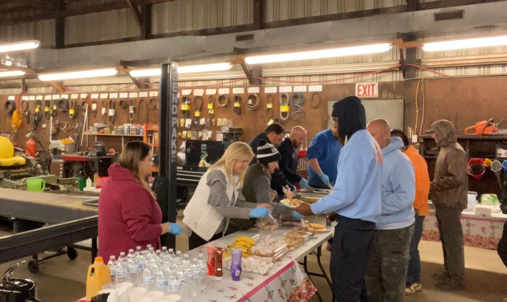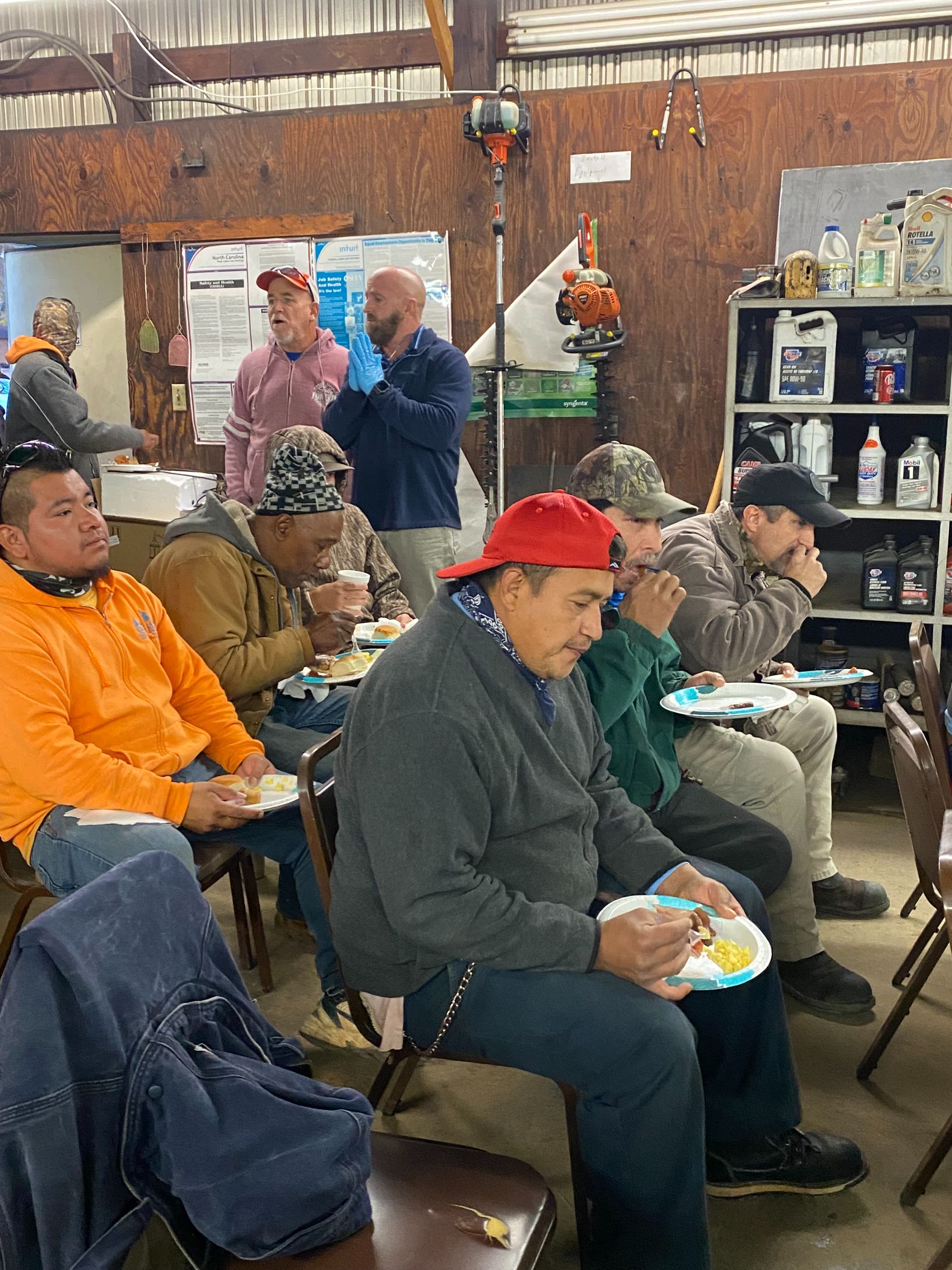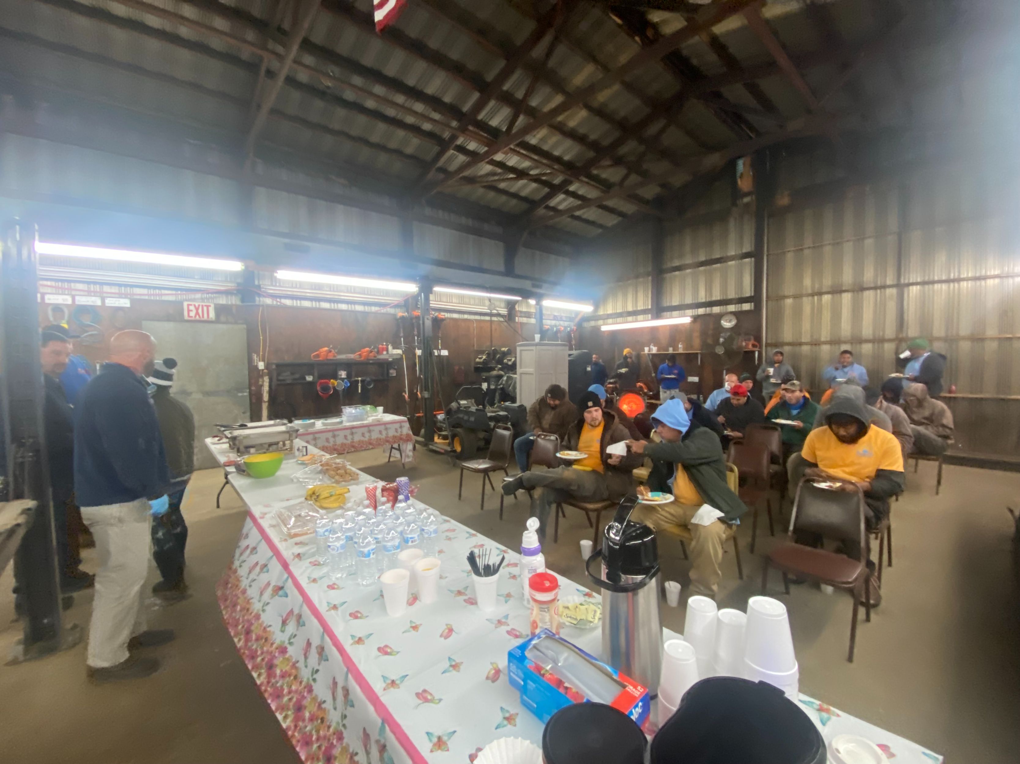 Ben’s Creek Nursery threw an early morning breakfast for all our employees today, as a small token of appreciation for all they do for us and for our customers. Ham, bacon, eggs, sausage, coffee cakes – a full meal with all the fixins, cooked up by our own Wilson St. Sing. Was a good time had by all? Let’s let the photos answer that question.