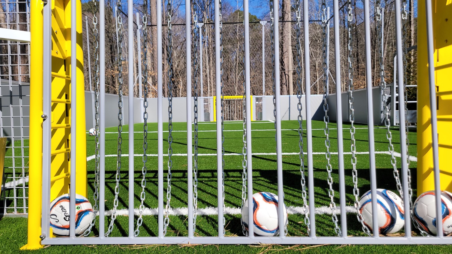 Behold, a mini-soccer field, guarded by Mary Nell Hollies.