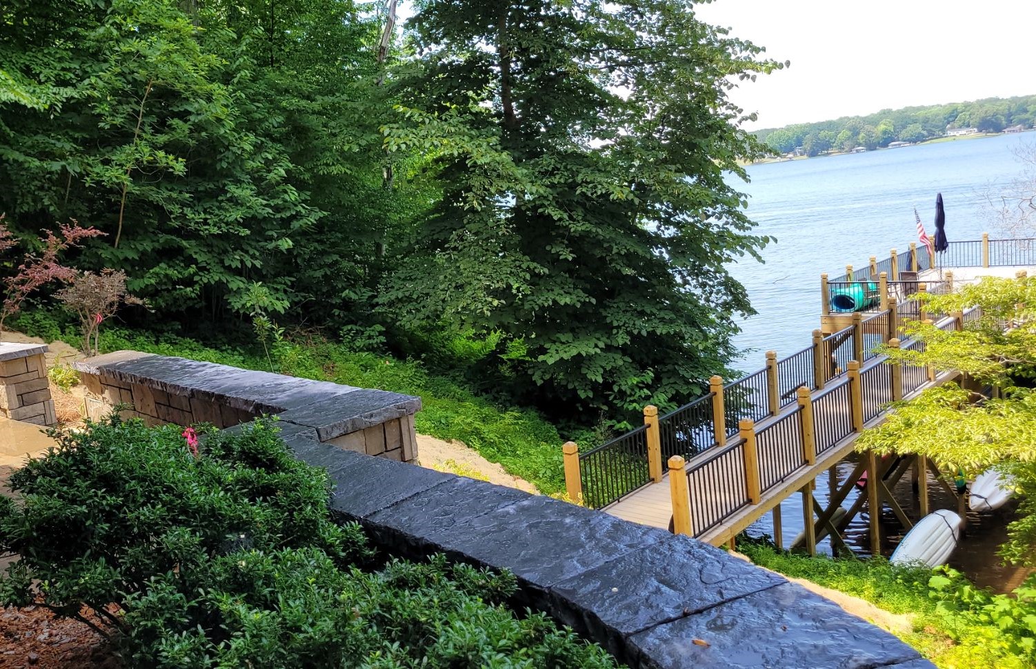 But correspondingly, you have a difficult terrain to traverse down to your boat dock. What’s the solution? Stone slab steps by Ben’s Creek Nursery.