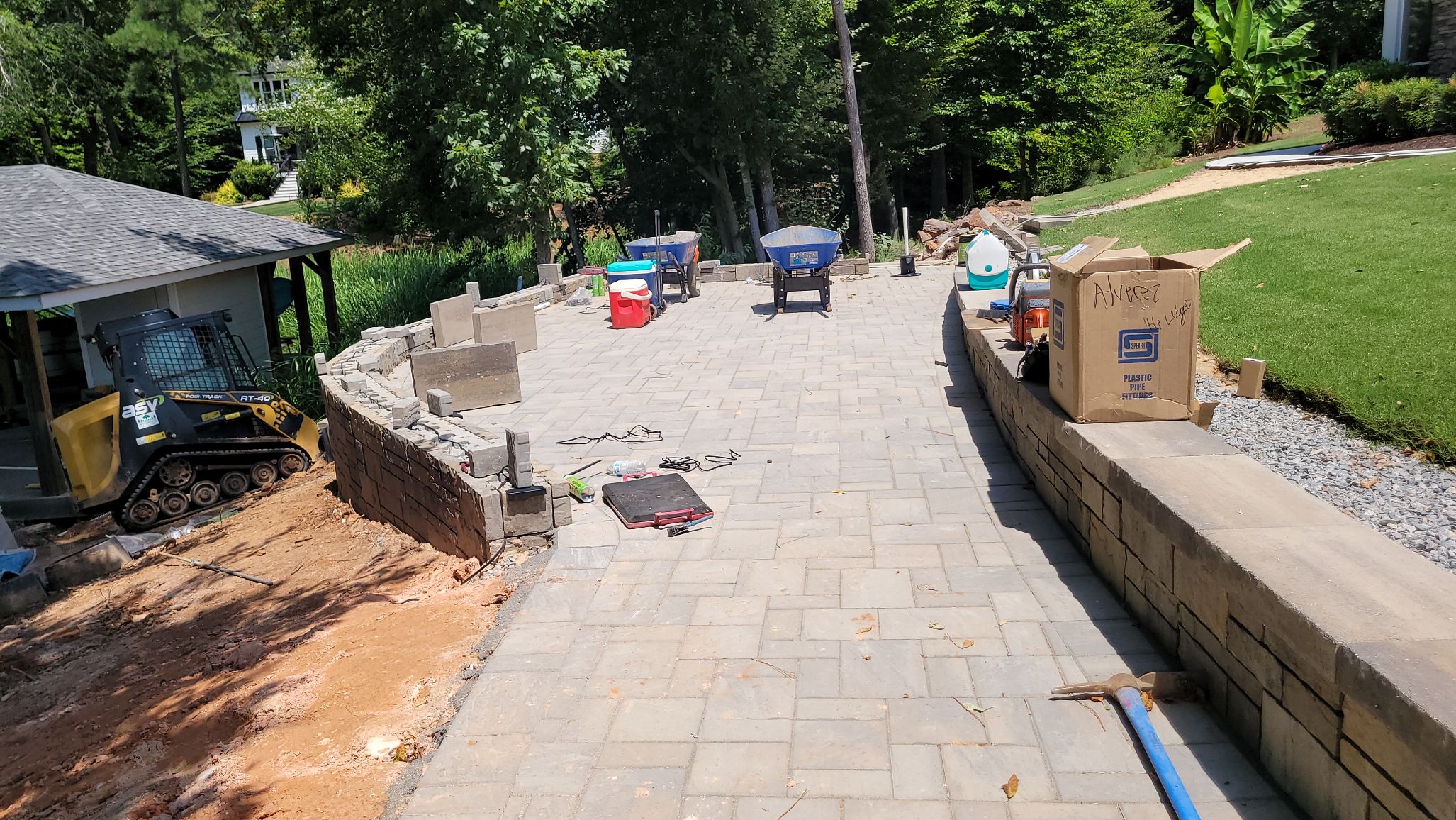 For those of you keeping track, the pavers are Techo Bloc Eva Champlain Grey and the retaining walls are composed of Belgard Shelby Ashlar Tandem.