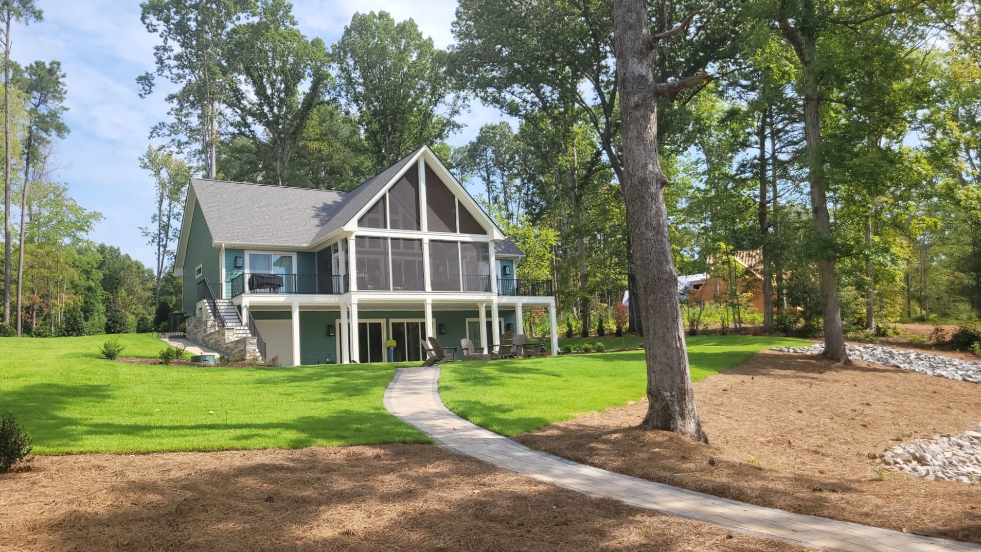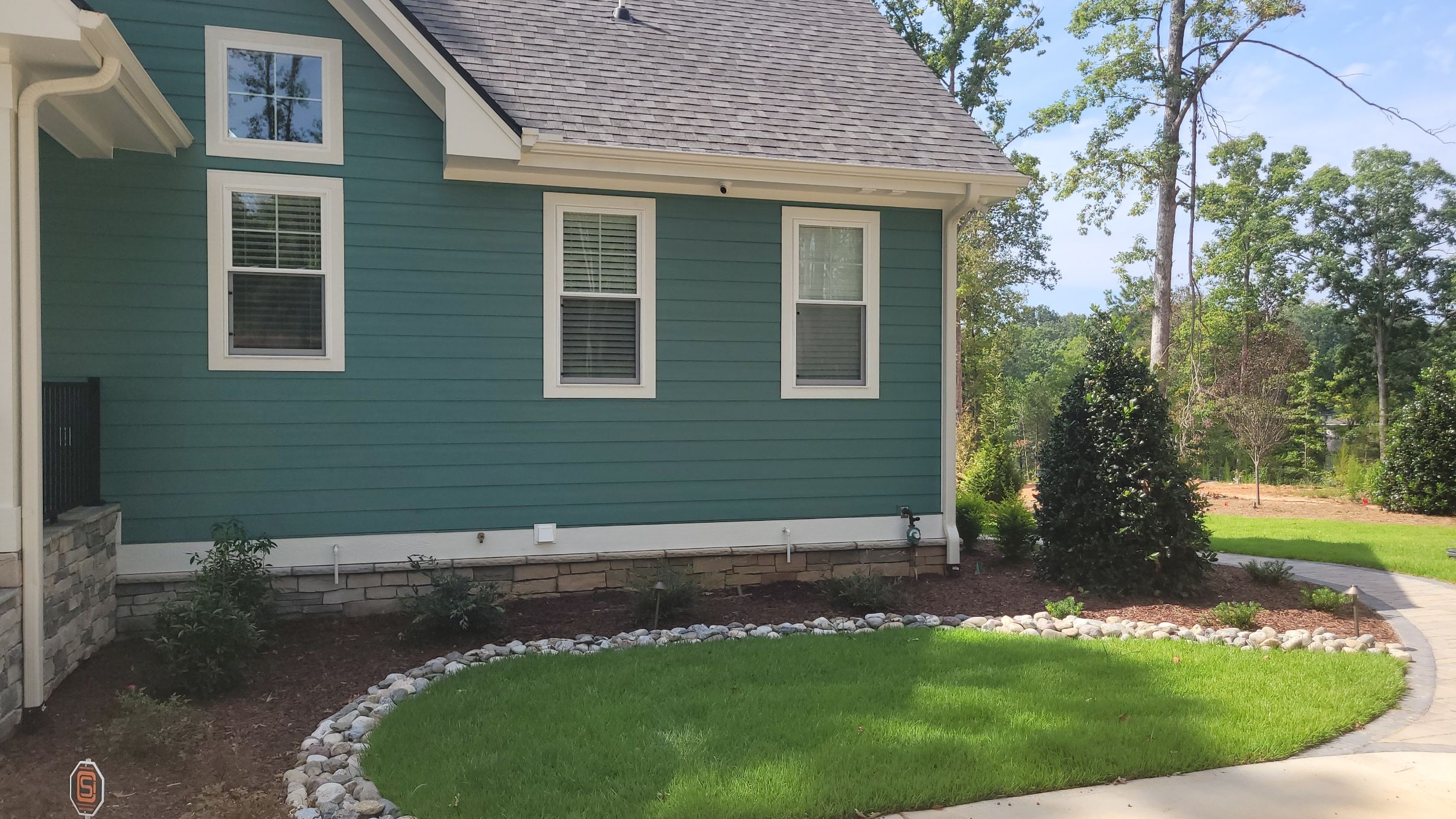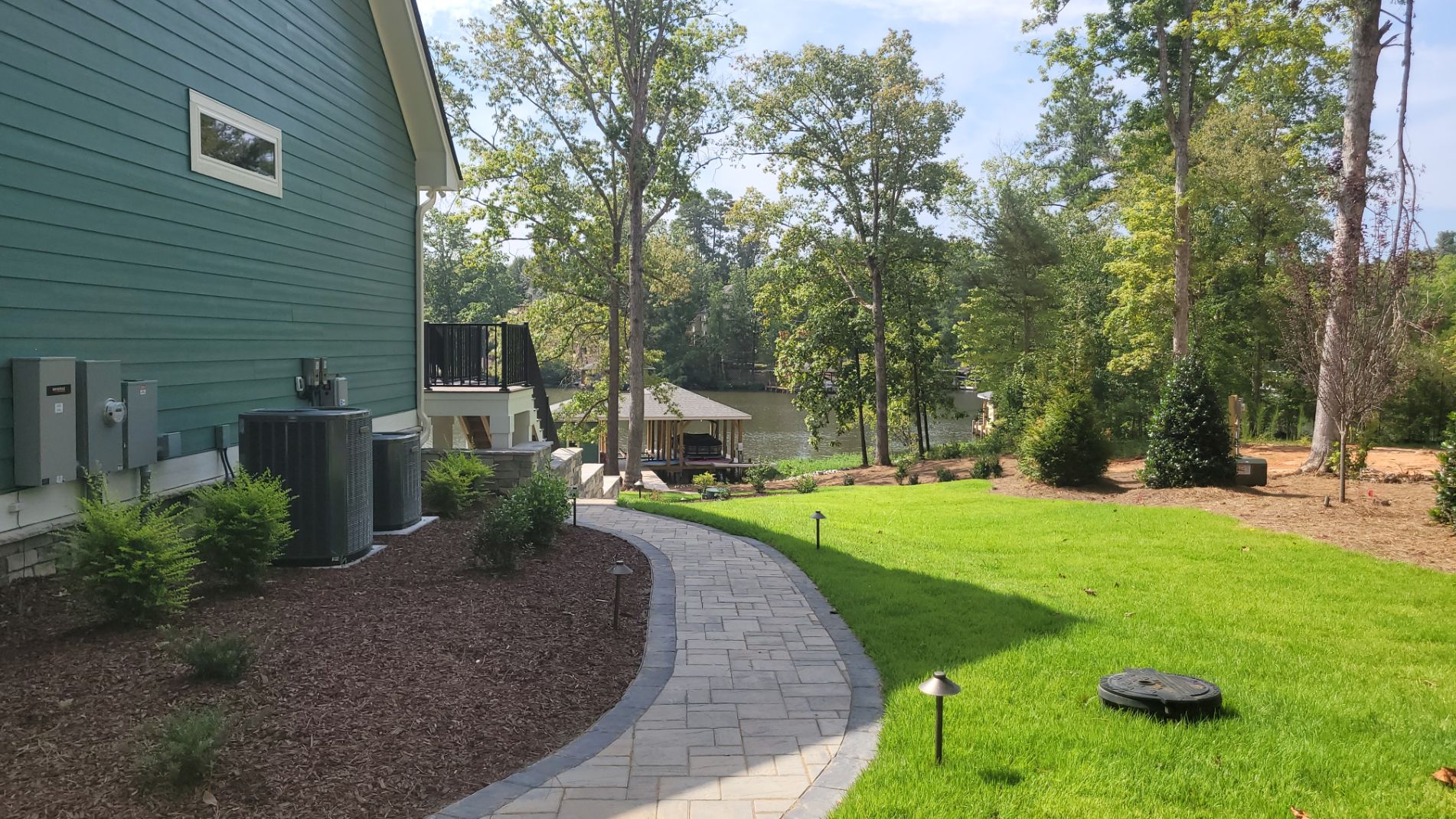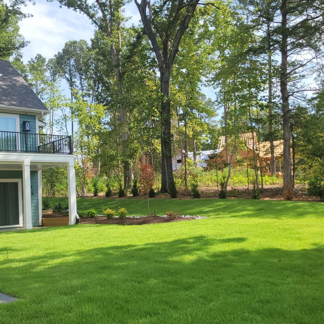 The homeowner brought us in to install a customized landscape plan to complement this gorgeous new home built by David Williams of Williams Custom Builders. Our work involved lawn installation, walkways, patios, foundation plantings, boundary trees and shrubs, and more!