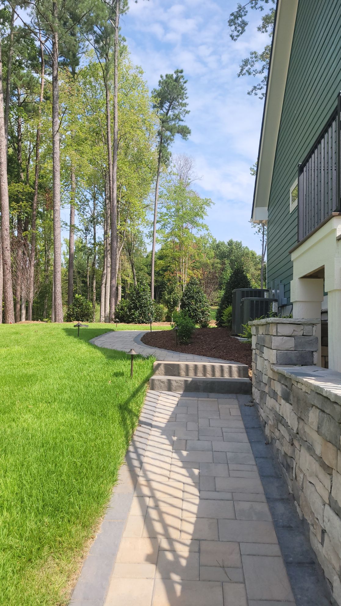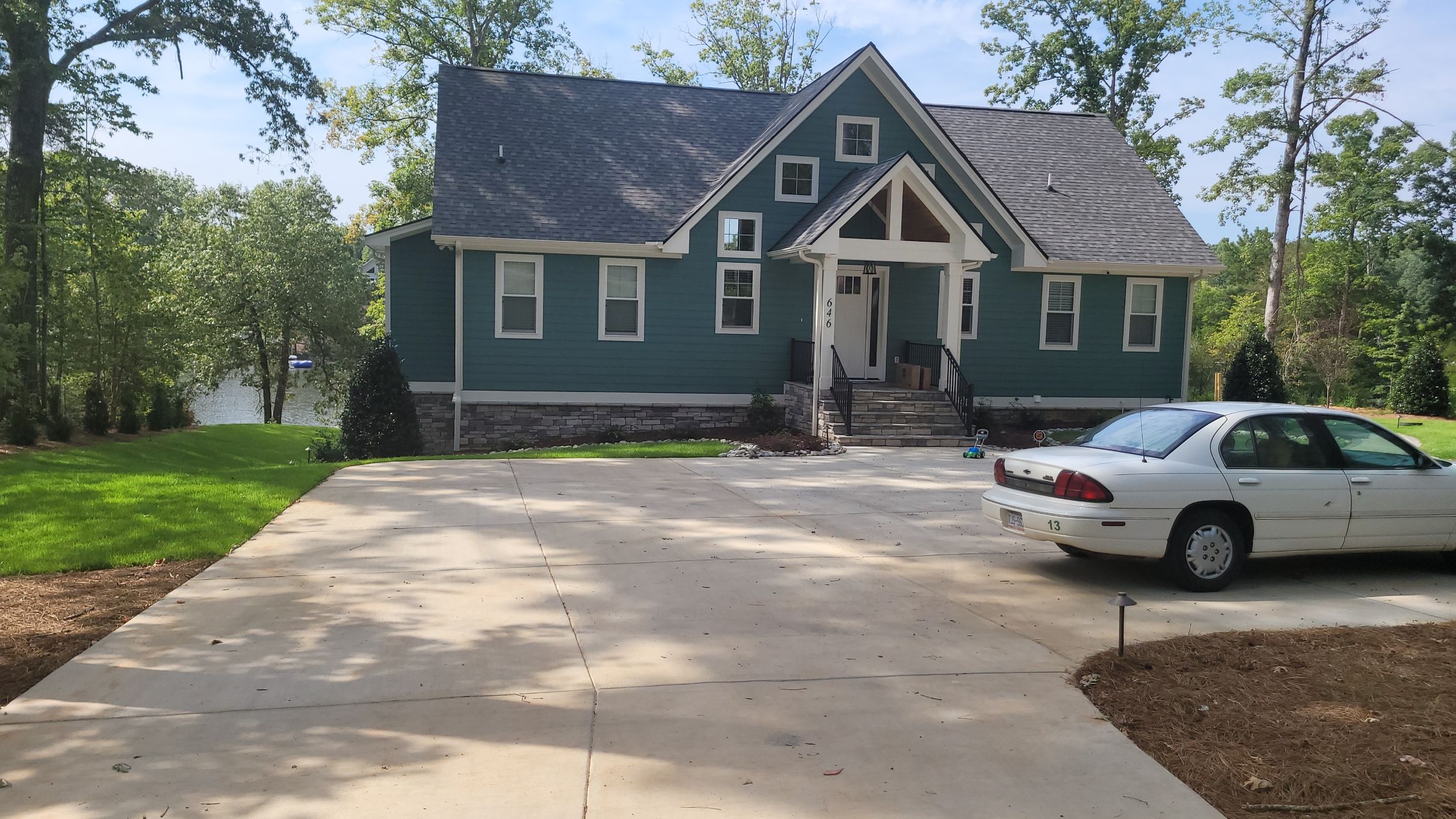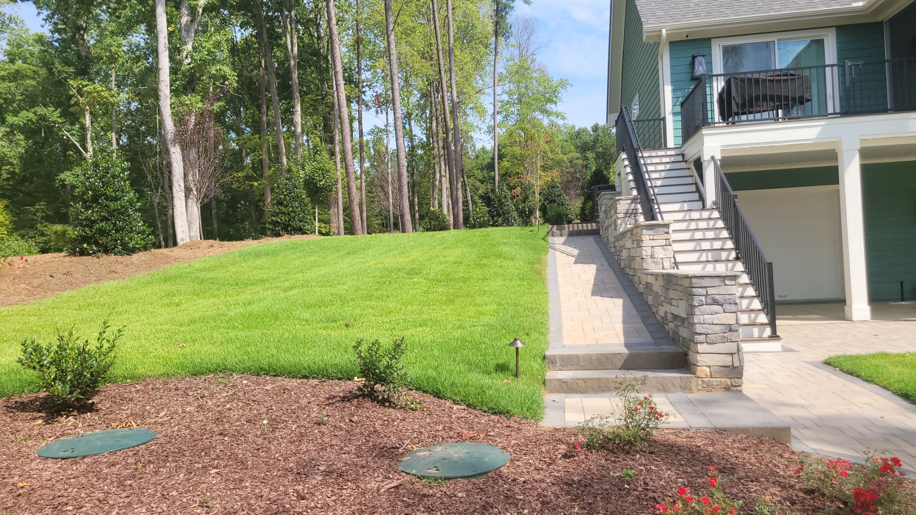 The homeowner brought us in to install a customized landscape plan to complement this gorgeous new home built by David Williams of Williams Custom Builders. Our work involved lawn installation, walkways, patios, foundation plantings, boundary trees and shrubs, and more!