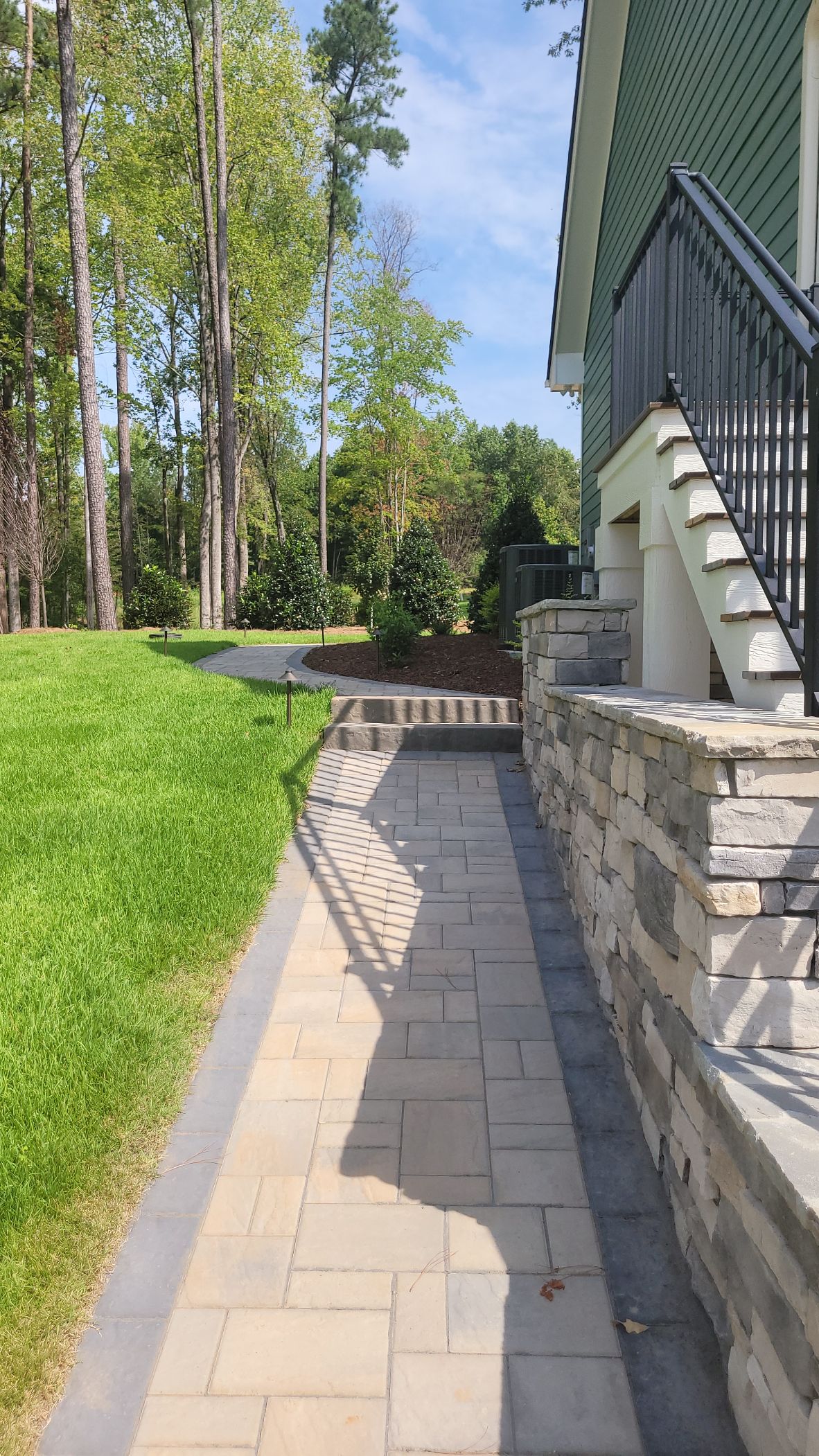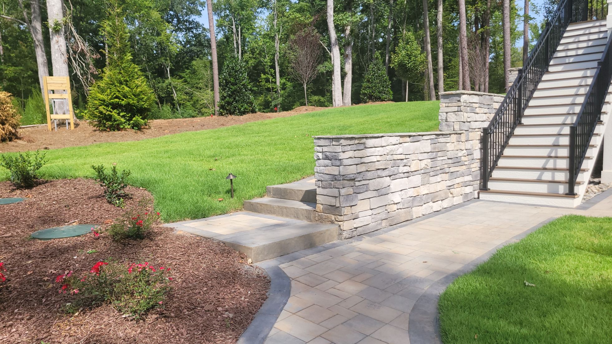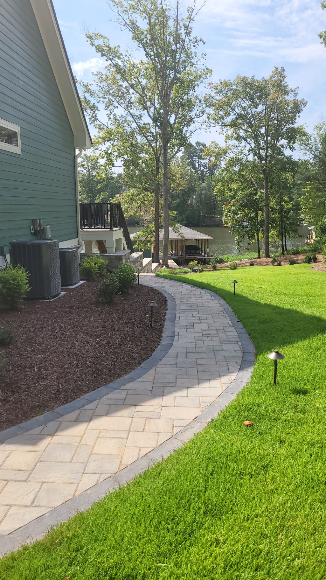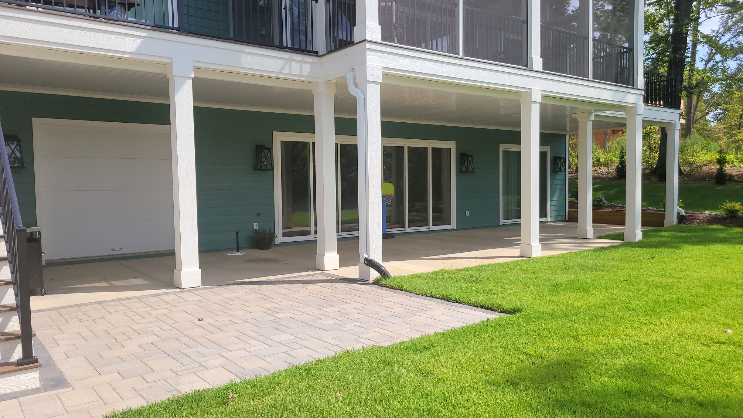 The homeowner brought us in to install a customized landscape plan to complement this gorgeous new home built by David Williams of Williams Custom Builders. Our work involved lawn installation, walkways, patios, foundation plantings, boundary trees and shrubs, and more!