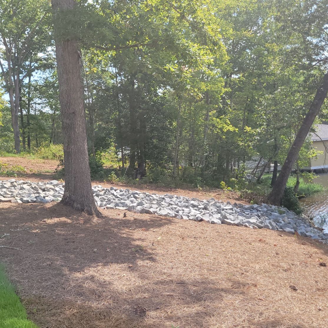In addition to the lawn installation, we brought in plenty of mulch and stone rip-rap.