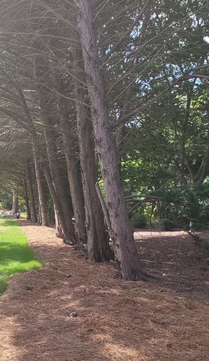 The side yard natural area cleaned up nicely with multiple bales of pine needles.