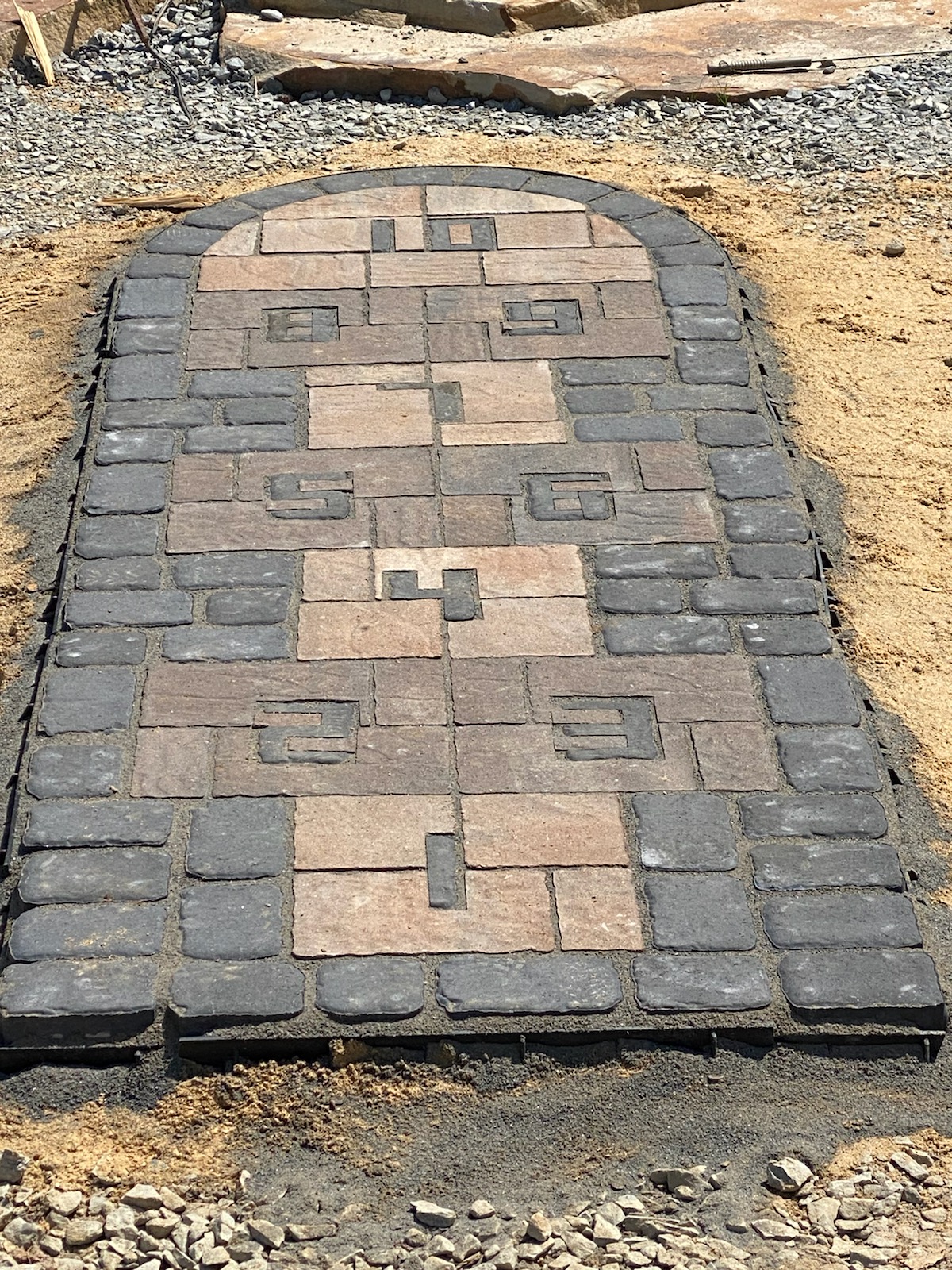To say the least, this job needed something more than the usual stone paver expertise our guys are known for. Art demands an artiste, and Brock Lilly, Glen Buckner, & Polito filled the bill, arranging some 200+ multi-colored stone pieces into this beautiful work of art.