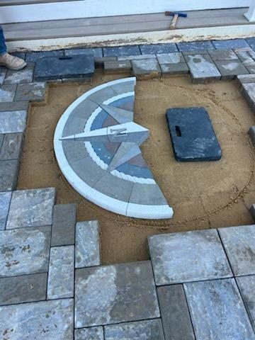 These paver insets have become somewhat of a thing around the Lake – here is another Compass Rose paver installation we did recently.