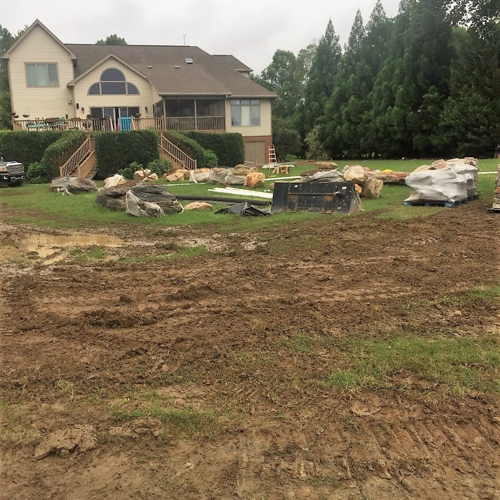 Stay tuned for Part Two of this post, which will include some major structural features we built, a river patio with a sitting wall, a stone bridge over the canal, and a large paver patio with a classic fireplace overlooking the river and a boat dock.