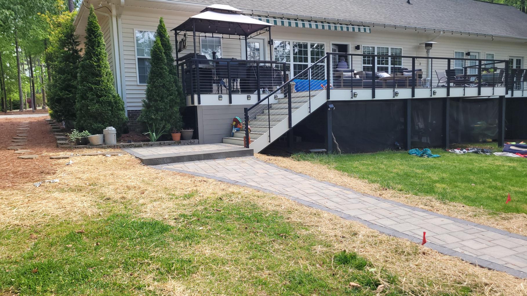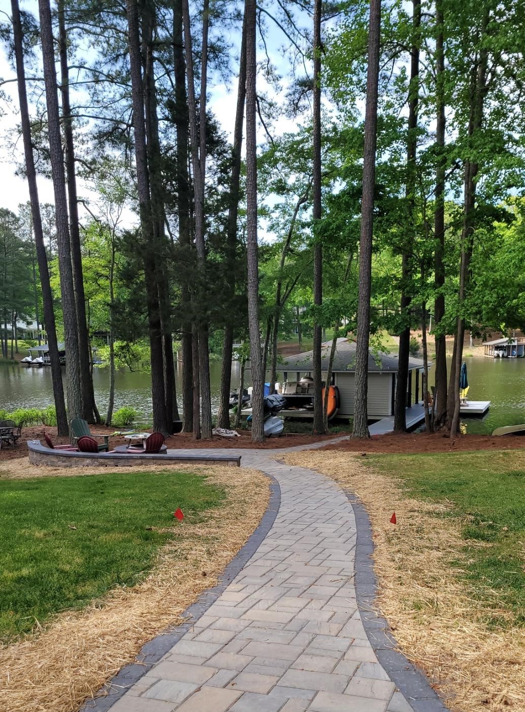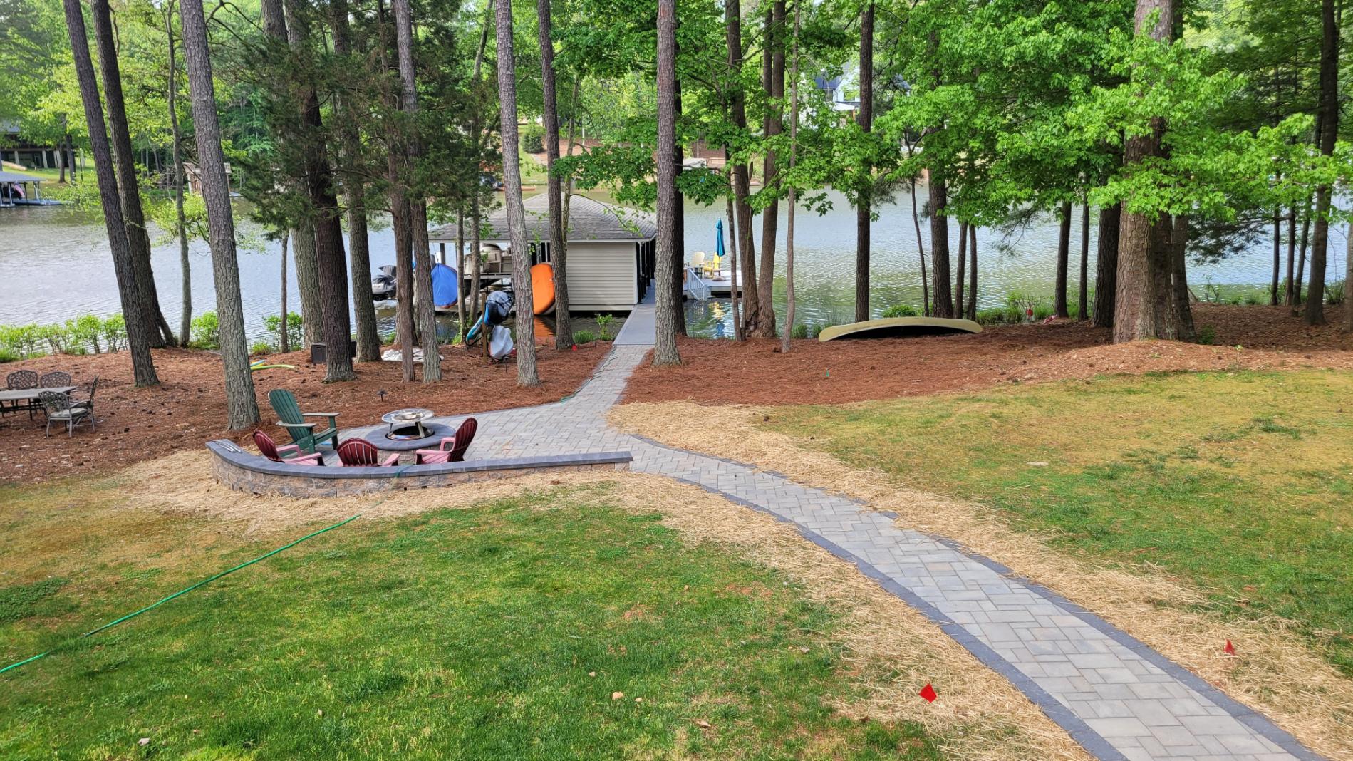 Just finished! This is another targeted upgrade to an existing landscape. It is a Lake access walkway with an adjoining patio fire pit.