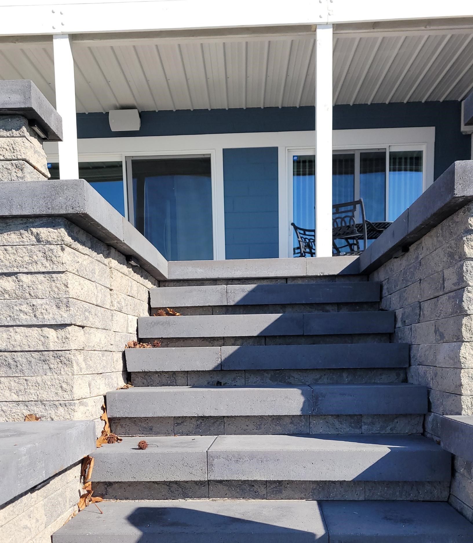 … and incorporates stone slab transition steps on the Lake side.