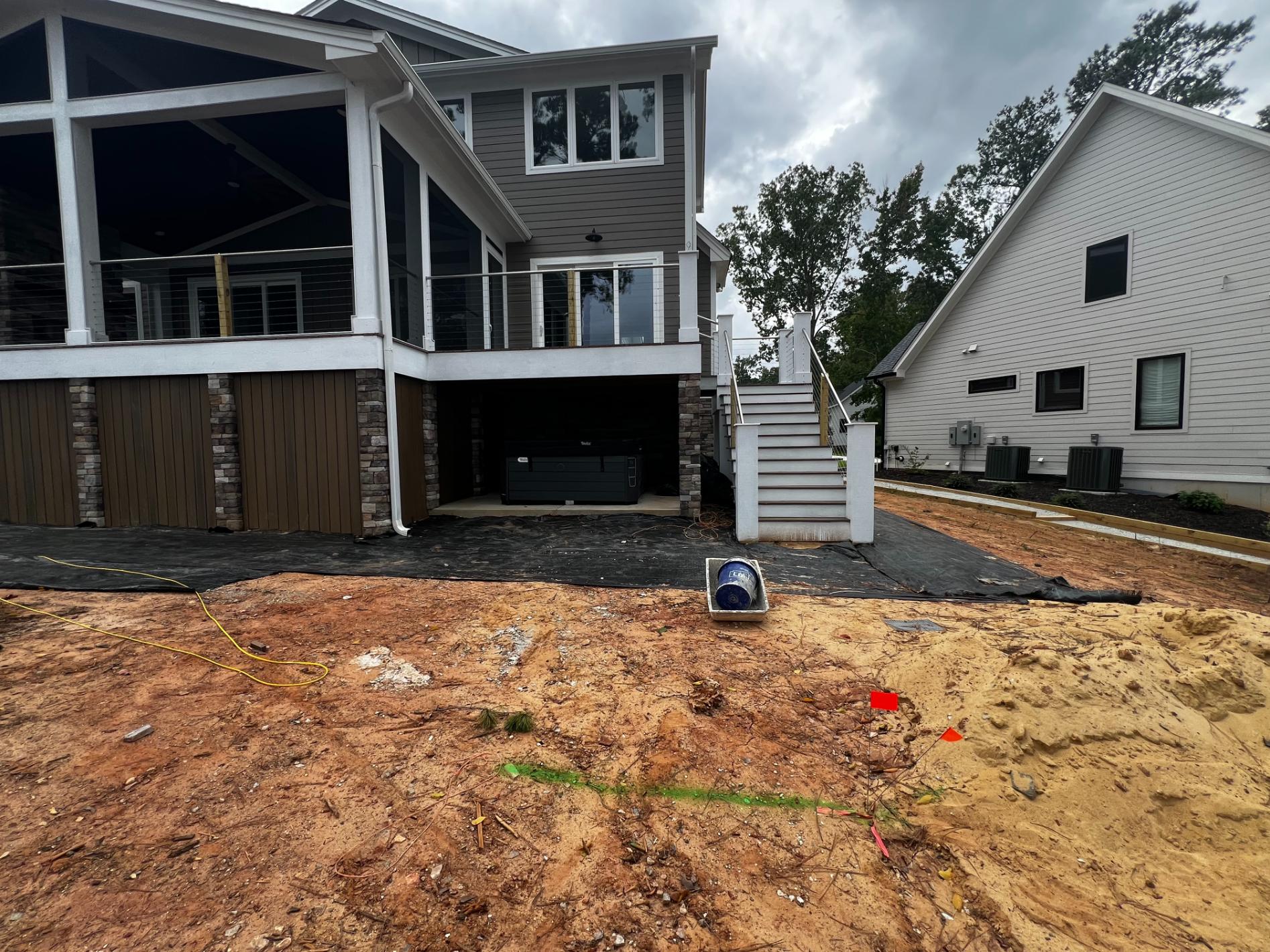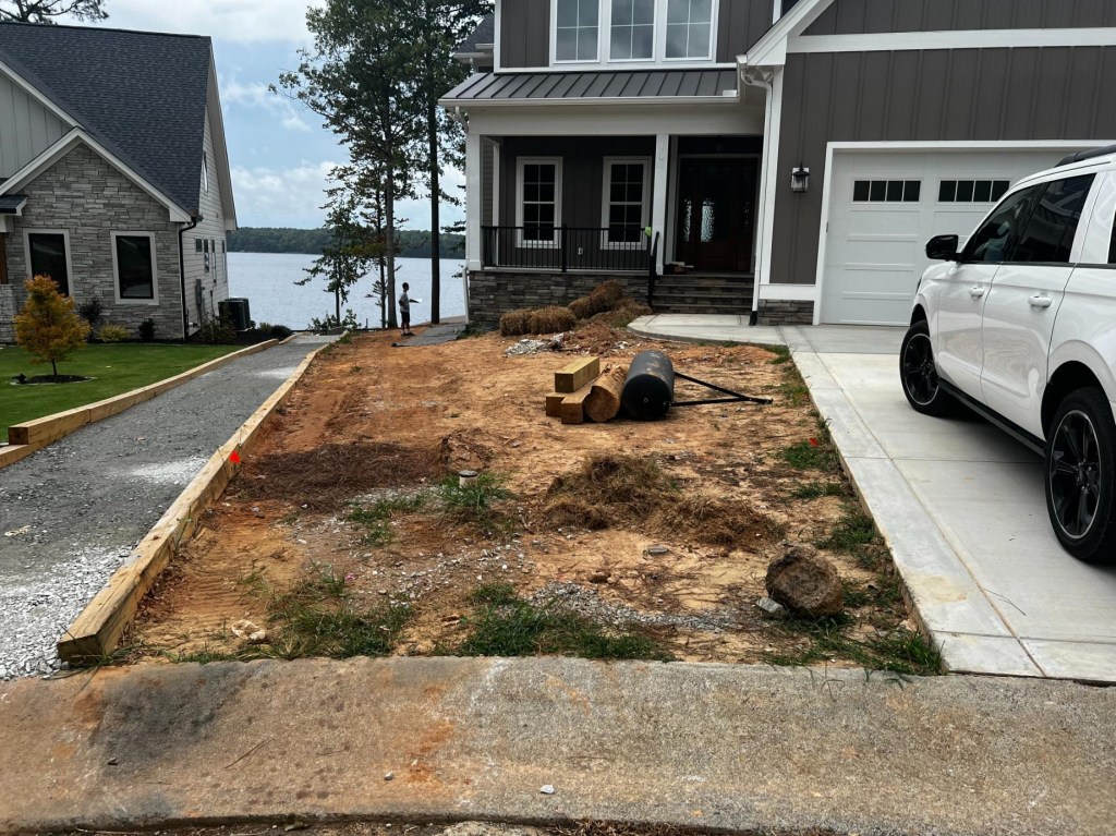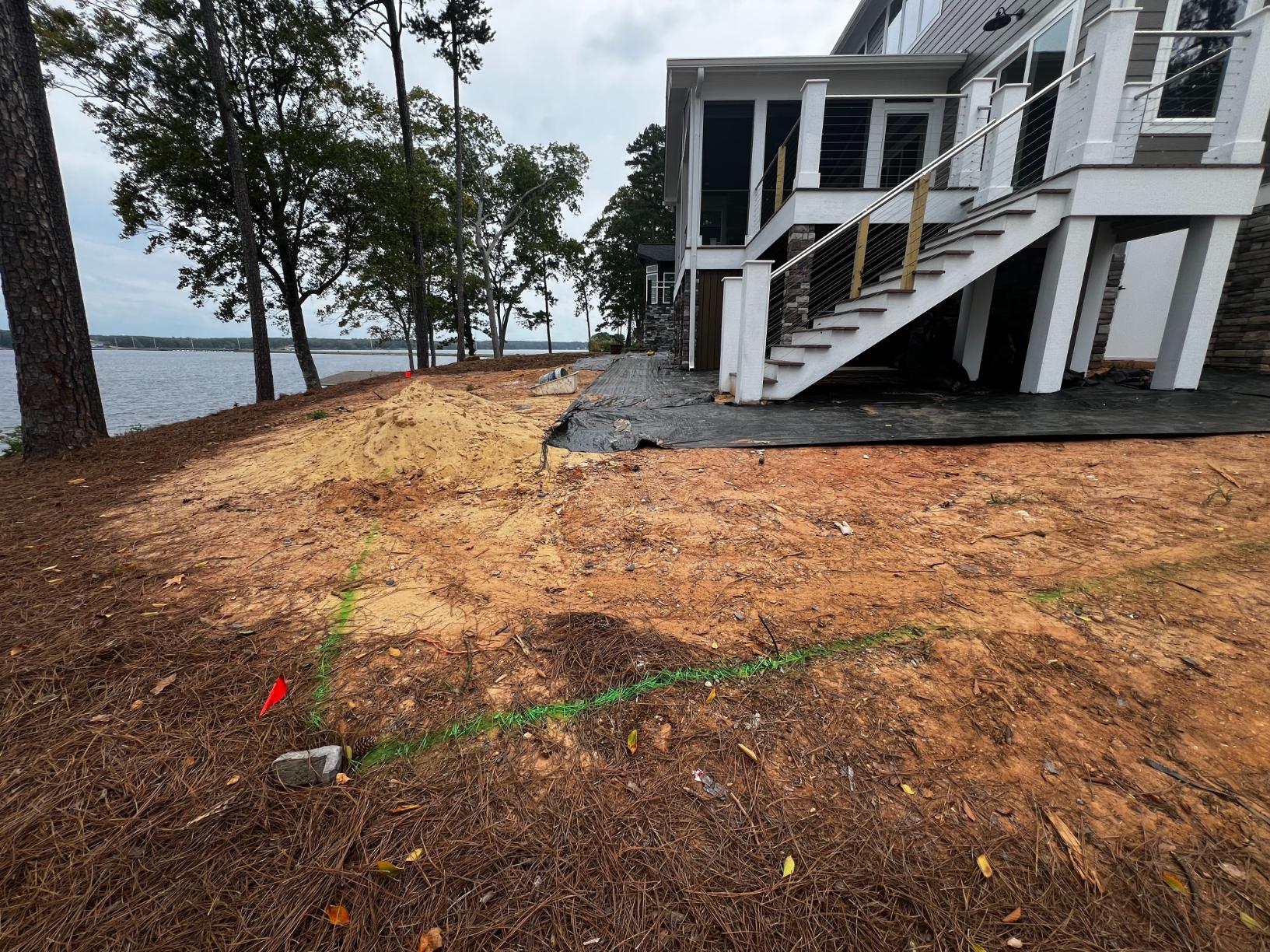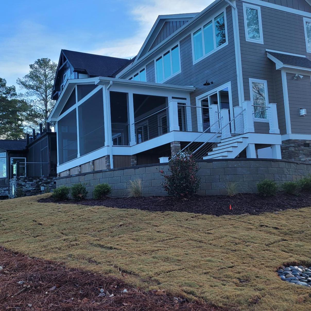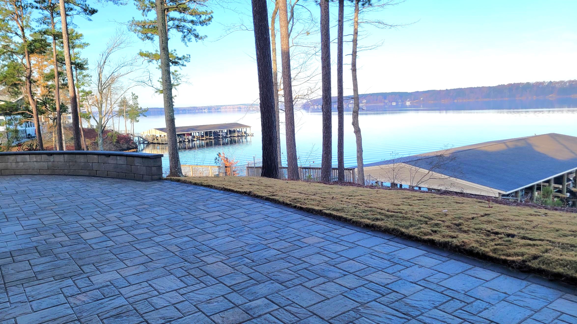 Our crews have just finished up on some targeted upgrades to a beautiful Lake home. As the title says, we installed a new stone paver patio, sod, lighting, and new garden beds.