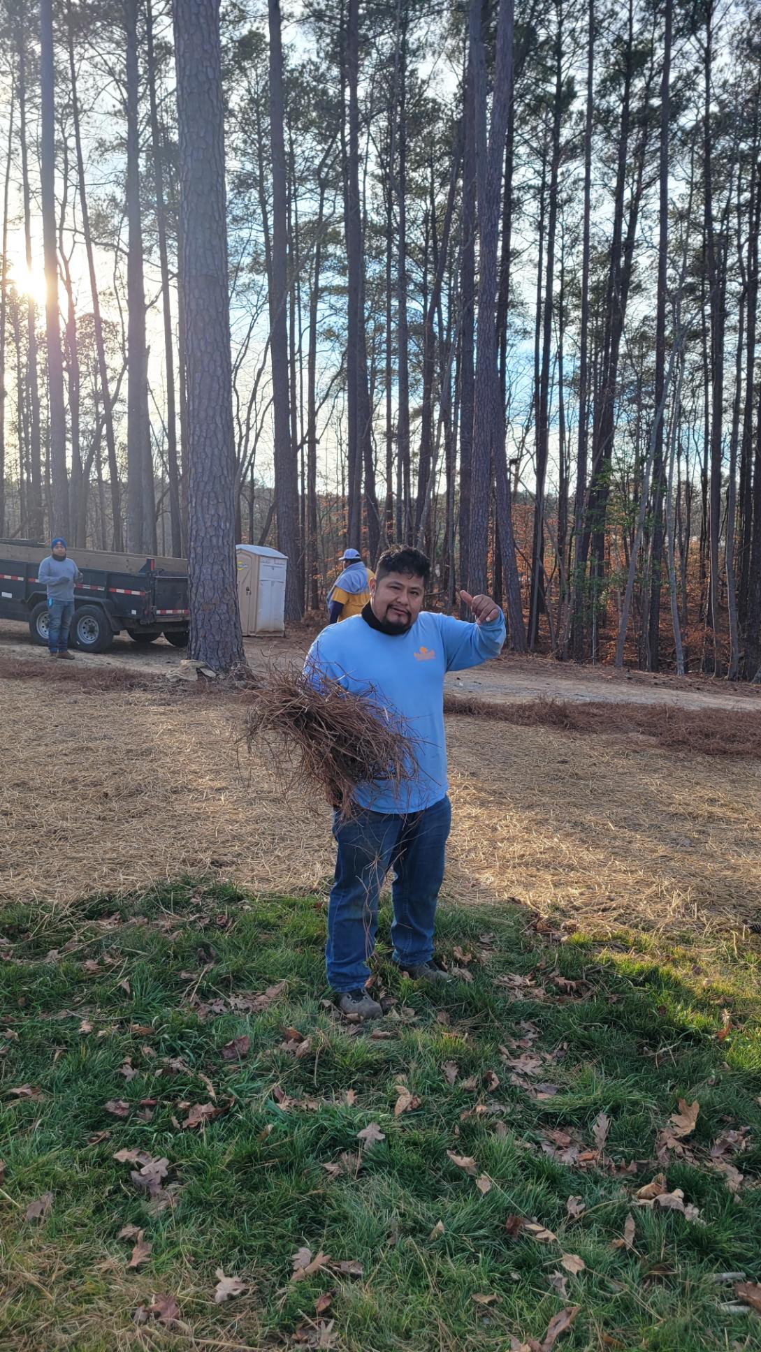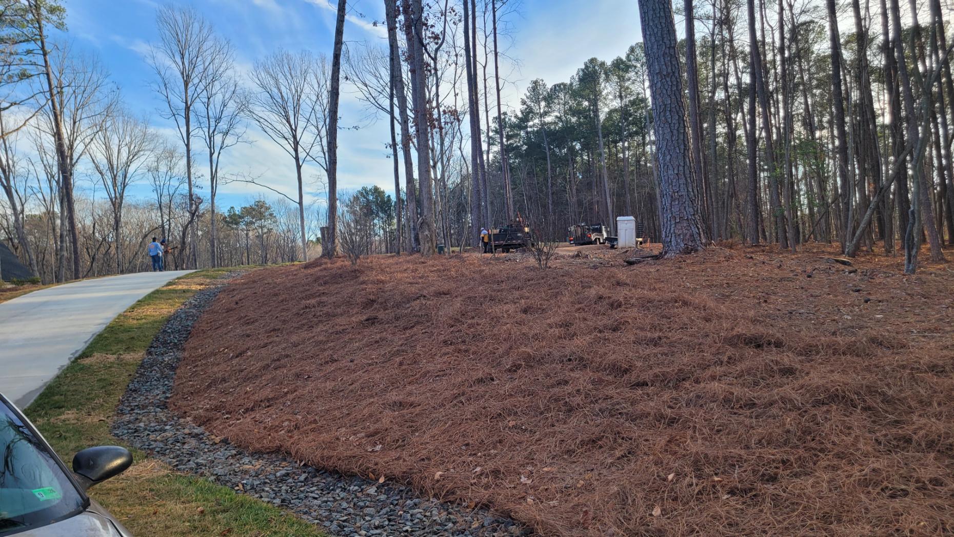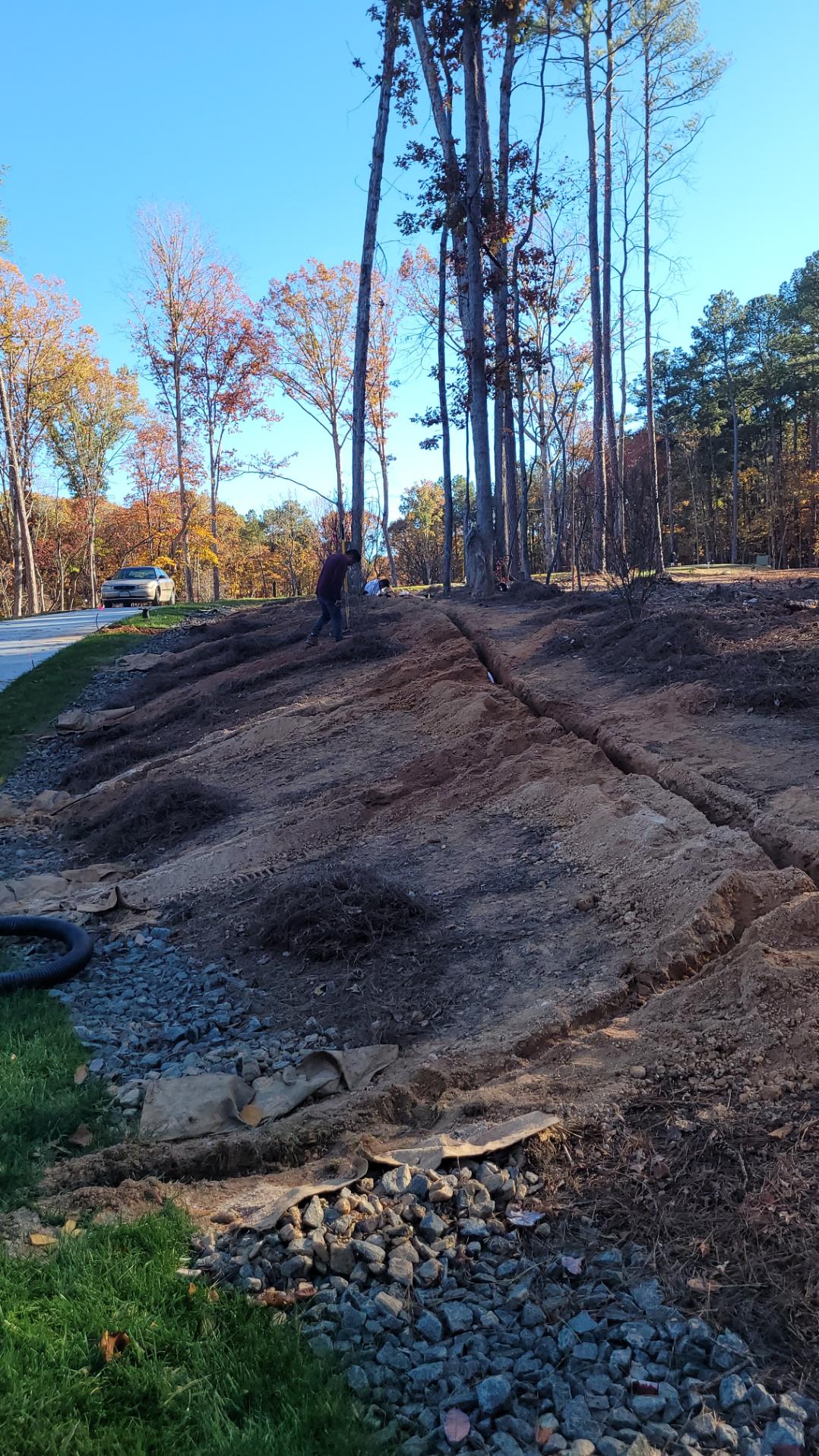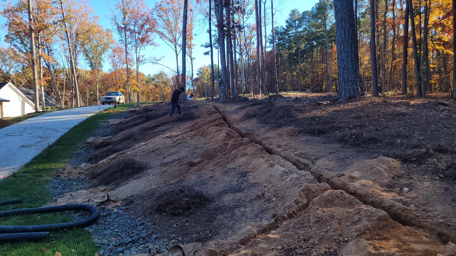 Irrigation fully installed, our guys cleaned up the front yard with grading, fill dirt, pine straw mulch, and new seed.