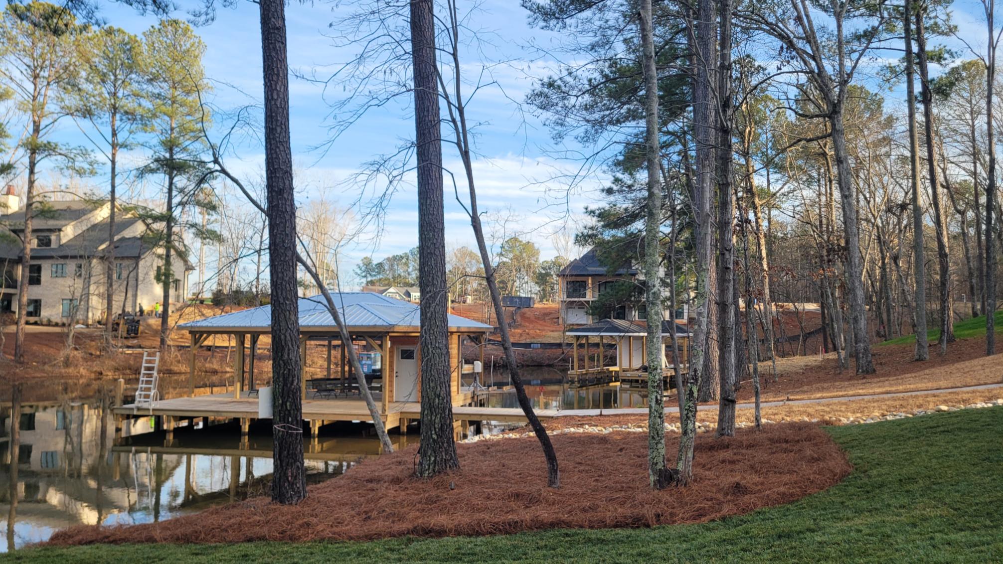 We graded the lakefront areas and put down fescue sod and pine straw mulch. First, a before photo.