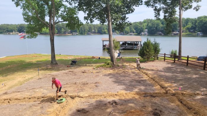 Walkways, patios, lighting, irrigation, grading, sod, and new plants - all in the service of a beautiful property with a spectacular view of the Lake. Our guys' work here was epic in scope. Let's take it one section at a time. This is a 4' x 70' long Techo Bloc Champlain Grey paver sidewalk with … Continue reading Lake Overlook