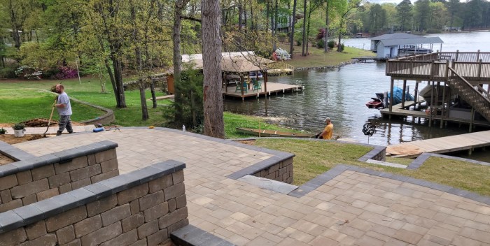 Walkways, patios, lighting, irrigation, grading, sod, and new plants - all in the service of a beautiful property with a spectacular view of the Lake. Our guys' work here was epic in scope. Let's take it one section at a time. This is a 4' x 70' long Techo Bloc Champlain Grey paver sidewalk with … Continue reading Lake Overlook