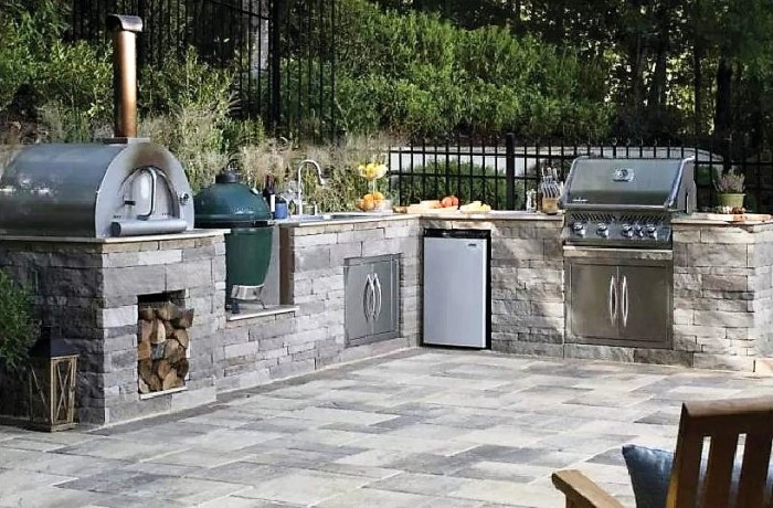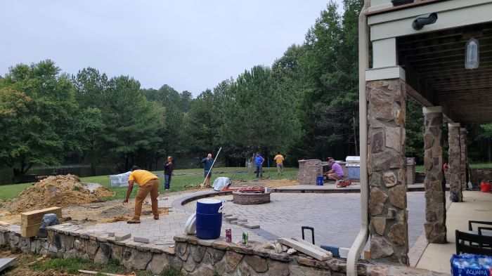 Early last Thursday, our crews were looking out over a secluded wooded landscape and private pond, working on patio upgrades for a customer. The upgrades are an outdoor kitchen and an extension to an existing stone paver patio. The crew is a collection of paver patio All-Stars: Chewy, Keith Harvey, Brian Cook, Joaquin Pineda Villa, … Continue reading In Progress – Patio Upgrades