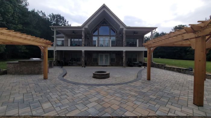 A Lake-side property with a wide view of the waters is highly prized, and there is no better addition to such a property than a stone pavor patio overlooking our beautiful Lake. This is an expansive Blue 60 Modern Nickeled Grey paver patio with Grande Slabs and a Blue 60 Onyx Black accent border, followed … Continue reading Lake Overlook