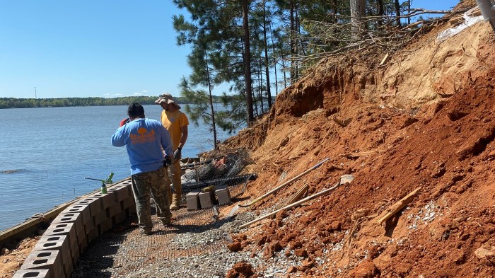 When you've got slope issues (as many Lake owners do) a retaining wall is the way to go. But before the wall goes up, there is a lot of ground to cover, so to speak. Here are some great pictures of our crews swarming to the task of moving dirt with heavy machinery, hand tools, … Continue reading Slope Control