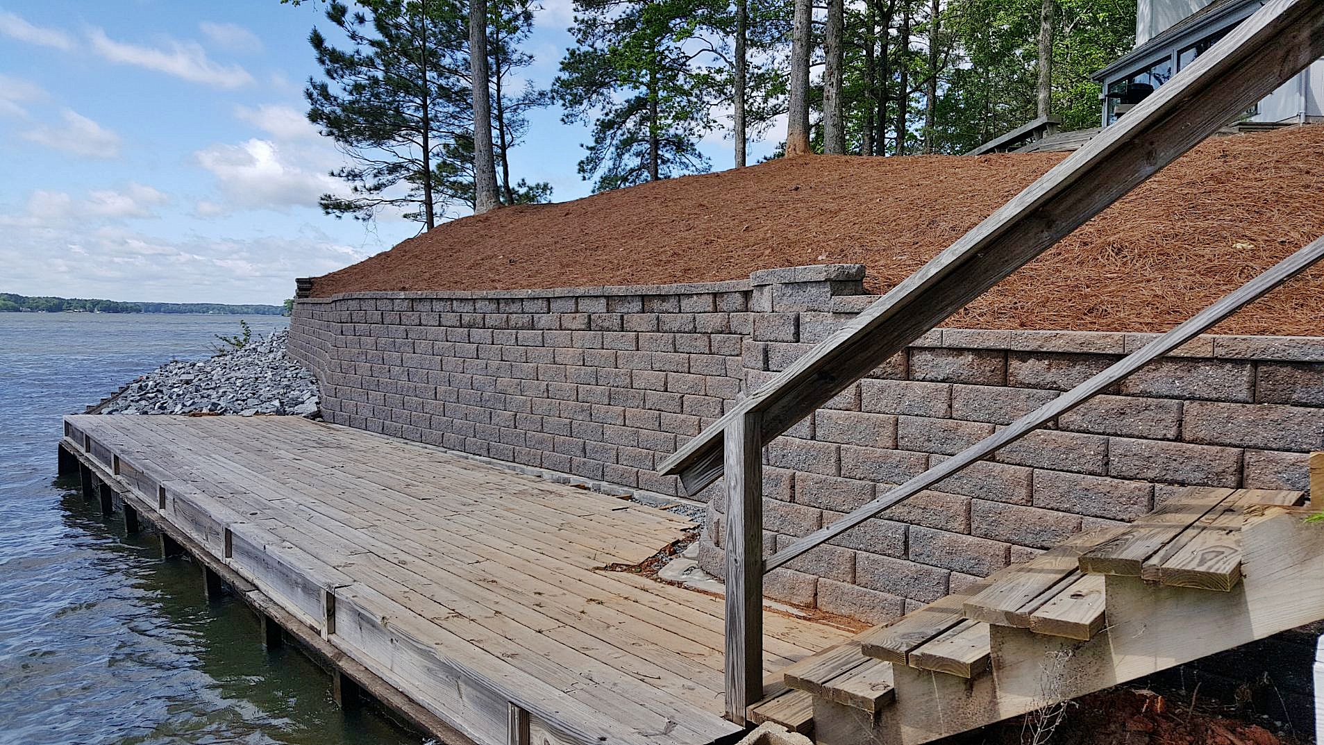 For example, this retaining wall will control water runoff and soil erosion, and the Colonial Blend Country Manor rock will form a clean, beautiful design for a planting bed. Two for the price of one!