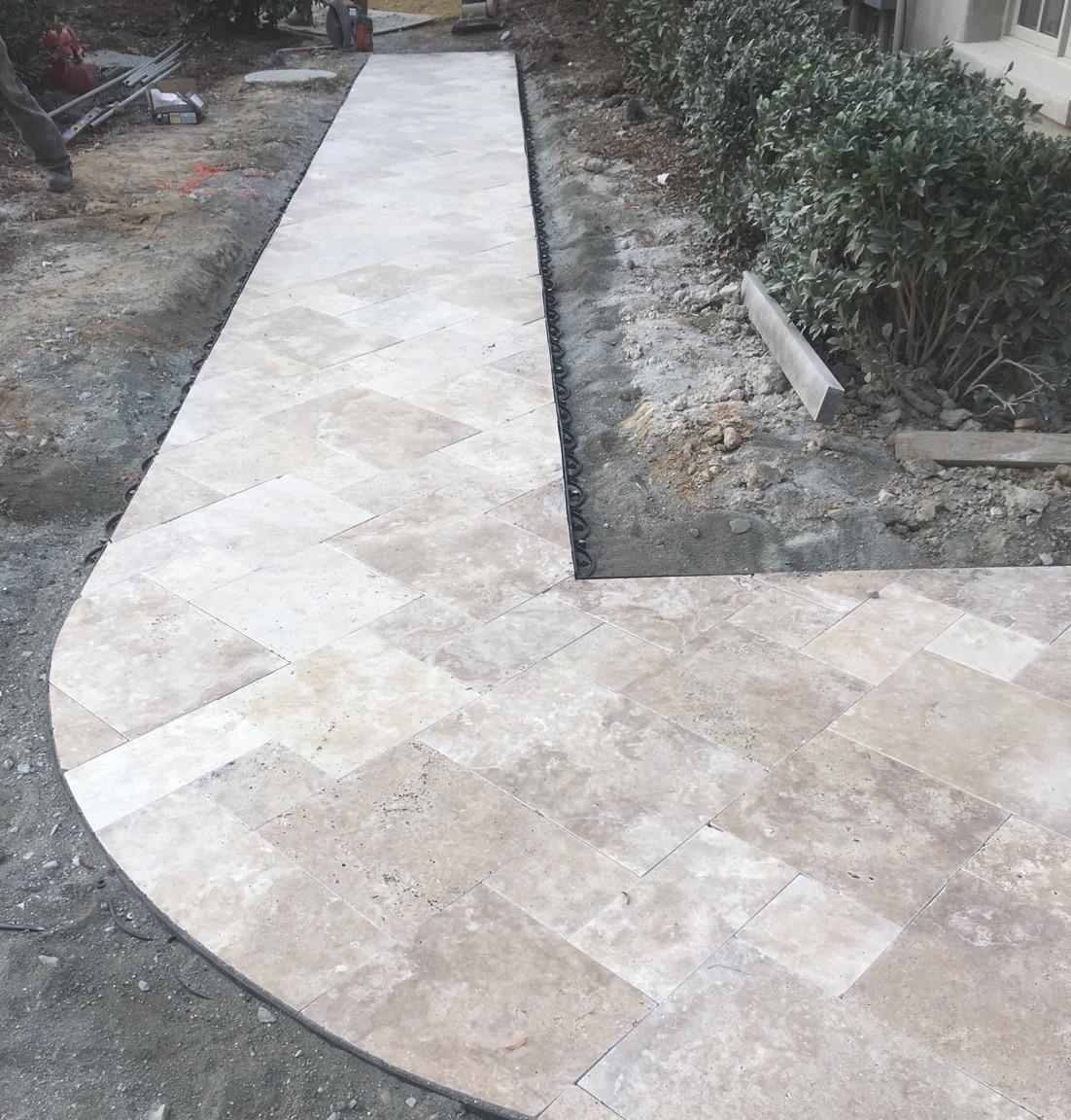 In this series, our guys used Dublin Fossil Beige pavers to build this walkway down a steep slope to the Lake.