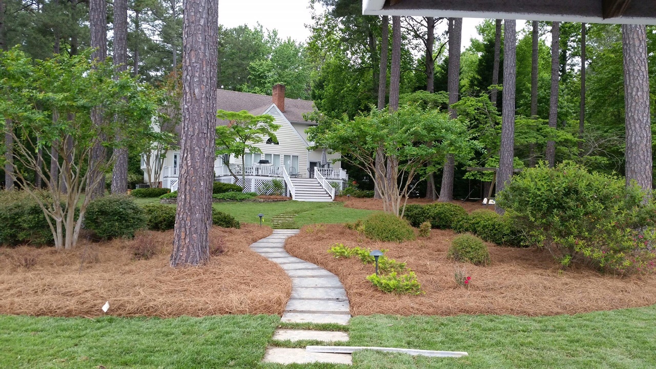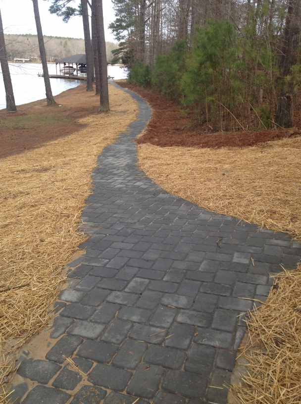 Our crews have been busily laying down fresh pine straw and repairs to turf around our customers walkways to enhance the experience of one of our favorite activities: walking the walks and pathways around and about our beautiful lake. Herewith some recent work.