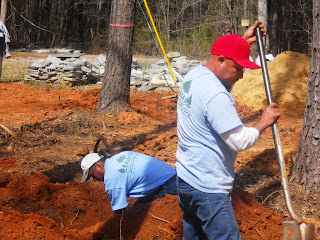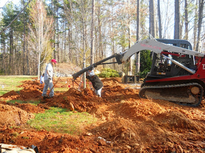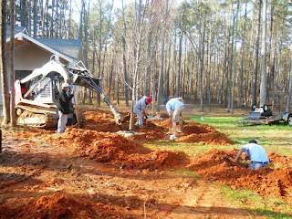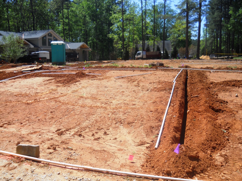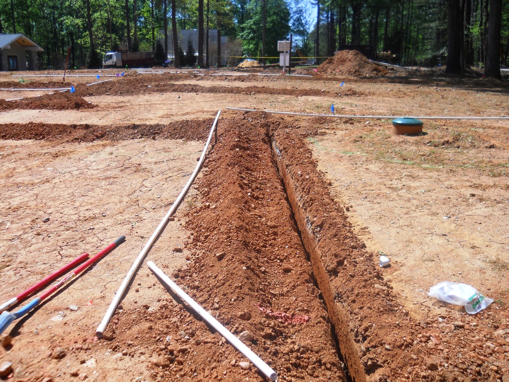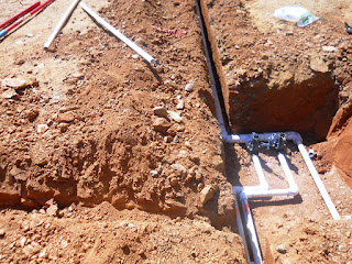 | Trenches dug, these pipes are then laid out for the irrigation system. |
